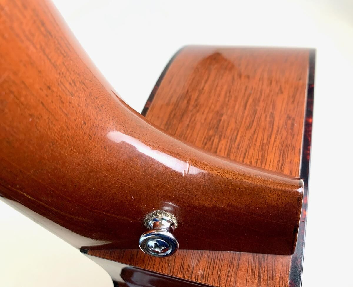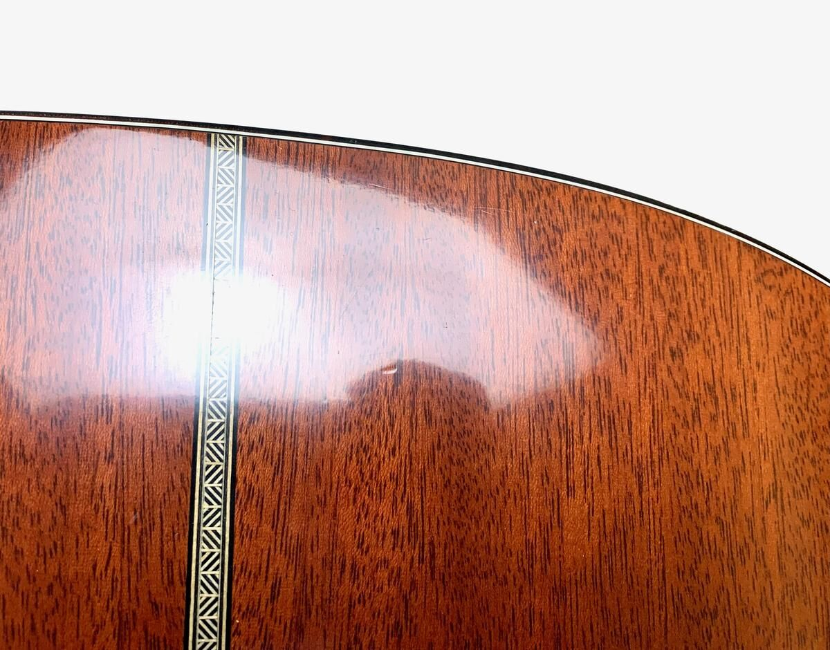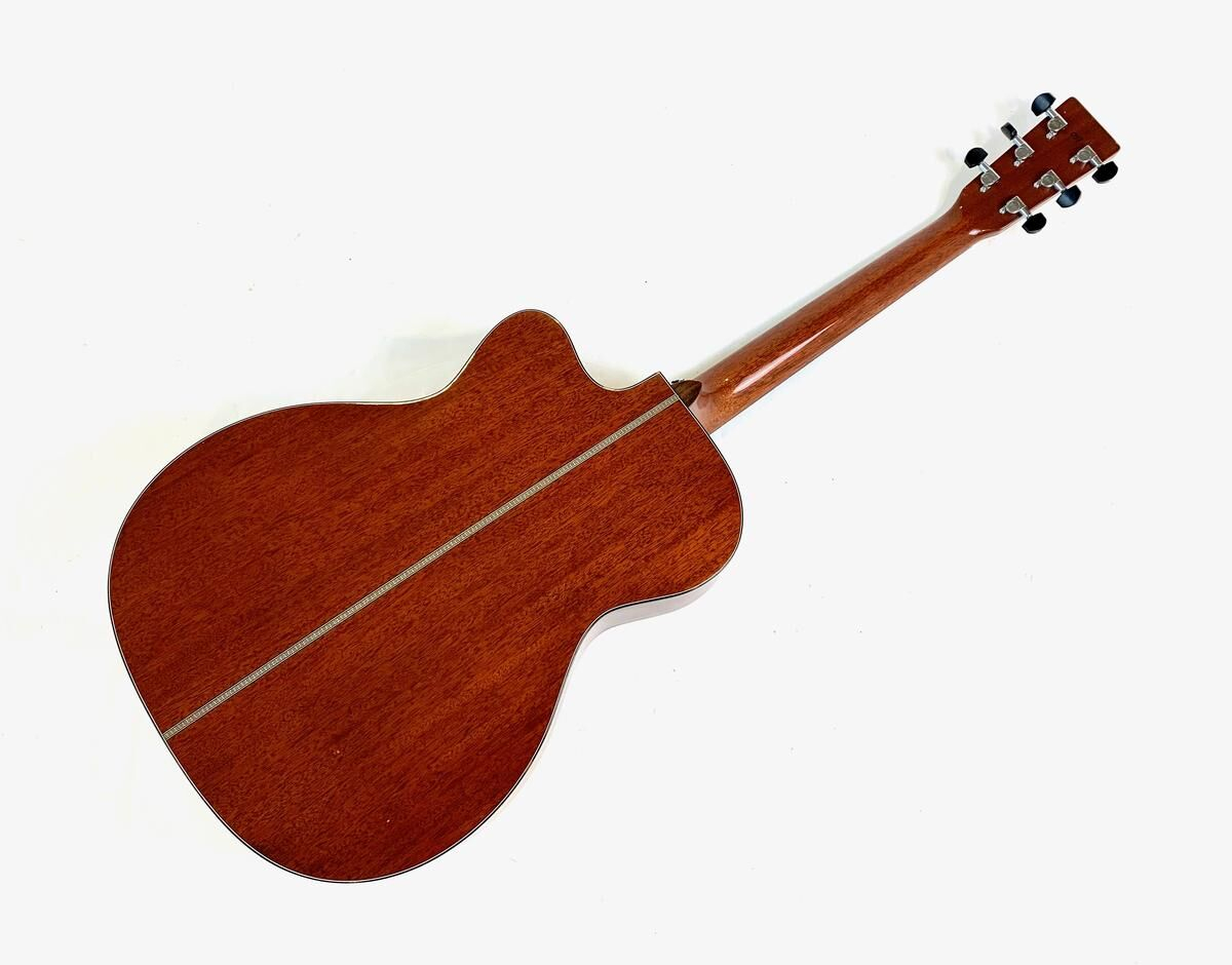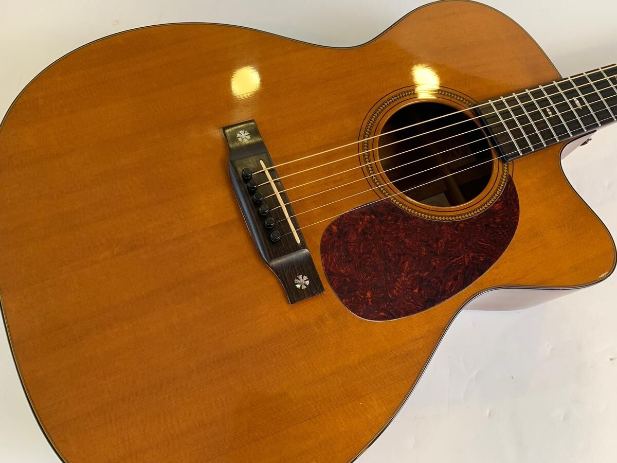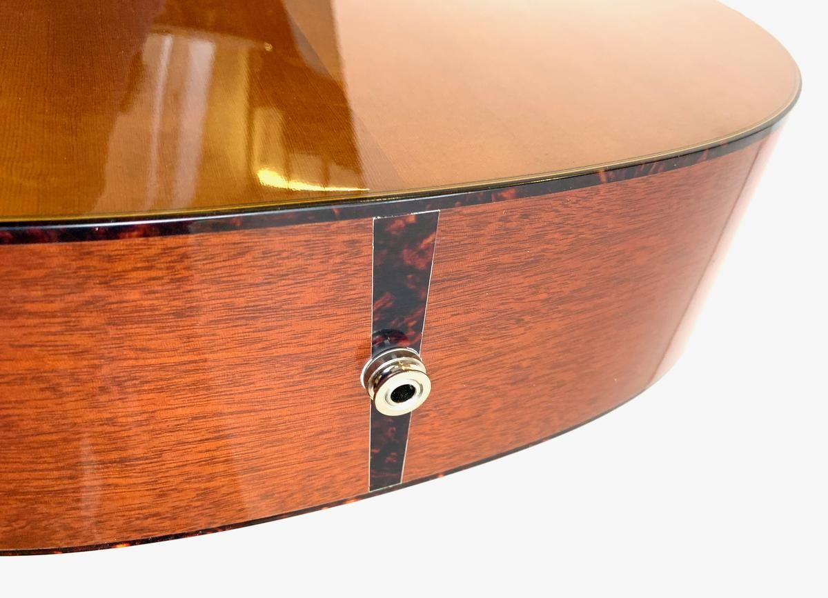 Cette édition limitée de 76 instruments, réalisée par le département Custom de chez Martin, présente une différence notable au niveau de la caisse qui est en acajou plutôt qu'en palissandre (ce bois est également utilisé pour le manche). Cela en fait une version extrêmement haut de gamme de la 000-18, légèrement modernisée grâce à l'ajout d'une découpe. La table est en épicéa européen, tandis que l'ébène est utilisé pour le chevalet, la touche et même une partie des mécaniques ! Des incrustations et des décorations en forme de flocon de neige ornent la touche et le chevalet. En ce qui concerne l'amplification, la guitare est équipée d'un Fishman Prefix. Elle est en excellent état et est vendue avec un étui générique.