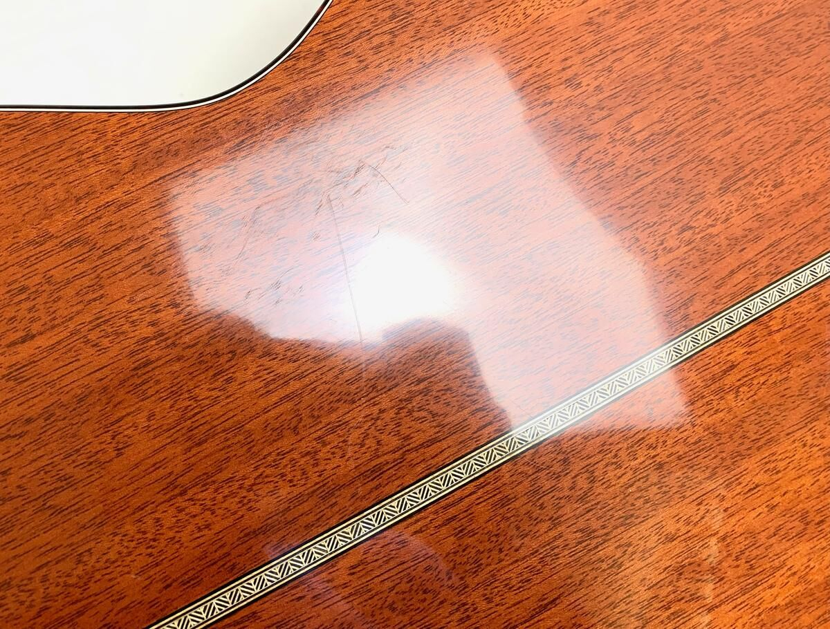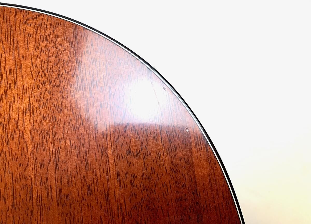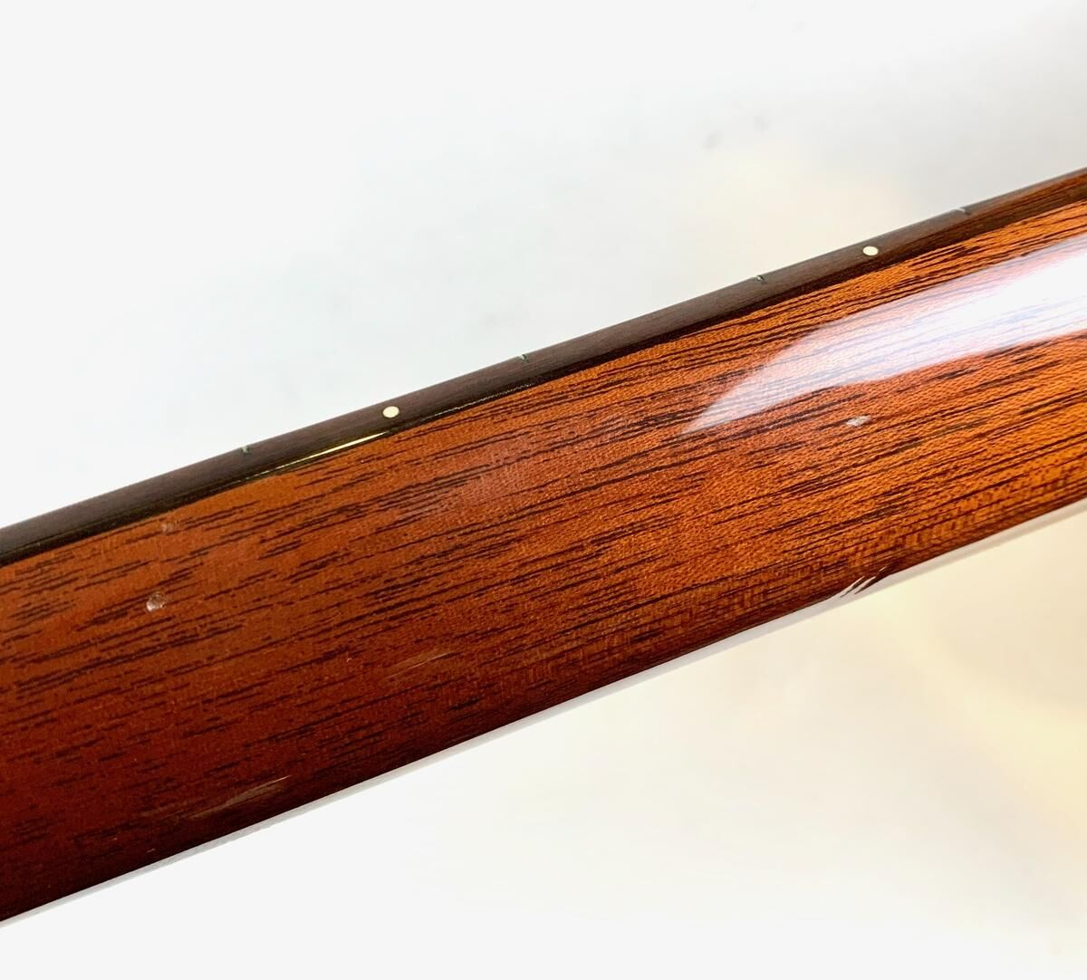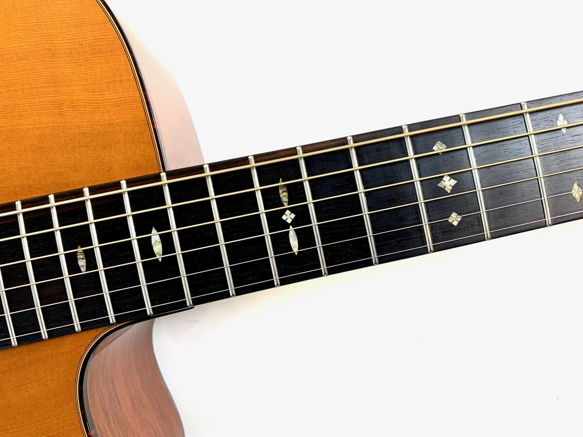 Cette édition limitée de 76 instruments, réalisée par le département Custom de chez Martin, présente une différence notable au niveau de la caisse qui est en acajou plutôt qu'en palissandre (ce bois est également utilisé pour le manche). Cela en fait une version extrêmement haut de gamme de la 000-18, légèrement modernisée grâce à l'ajout d'une découpe. La table est en épicéa européen, tandis que l'ébène est utilisé pour le chevalet, la touche et même une partie des mécaniques ! Des incrustations et des décorations en forme de flocon de neige ornent la touche et le chevalet. En ce qui concerne l'amplification, la guitare est équipée d'un Fishman Prefix. Elle est en excellent état et est vendue avec un étui générique.