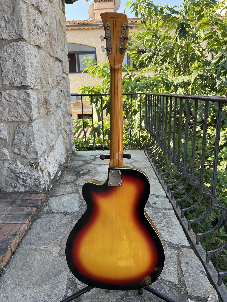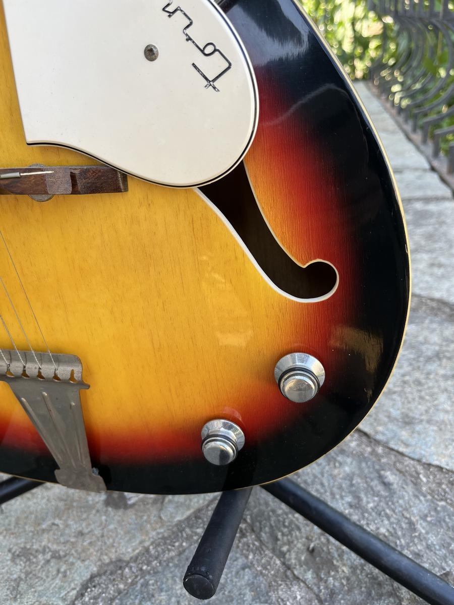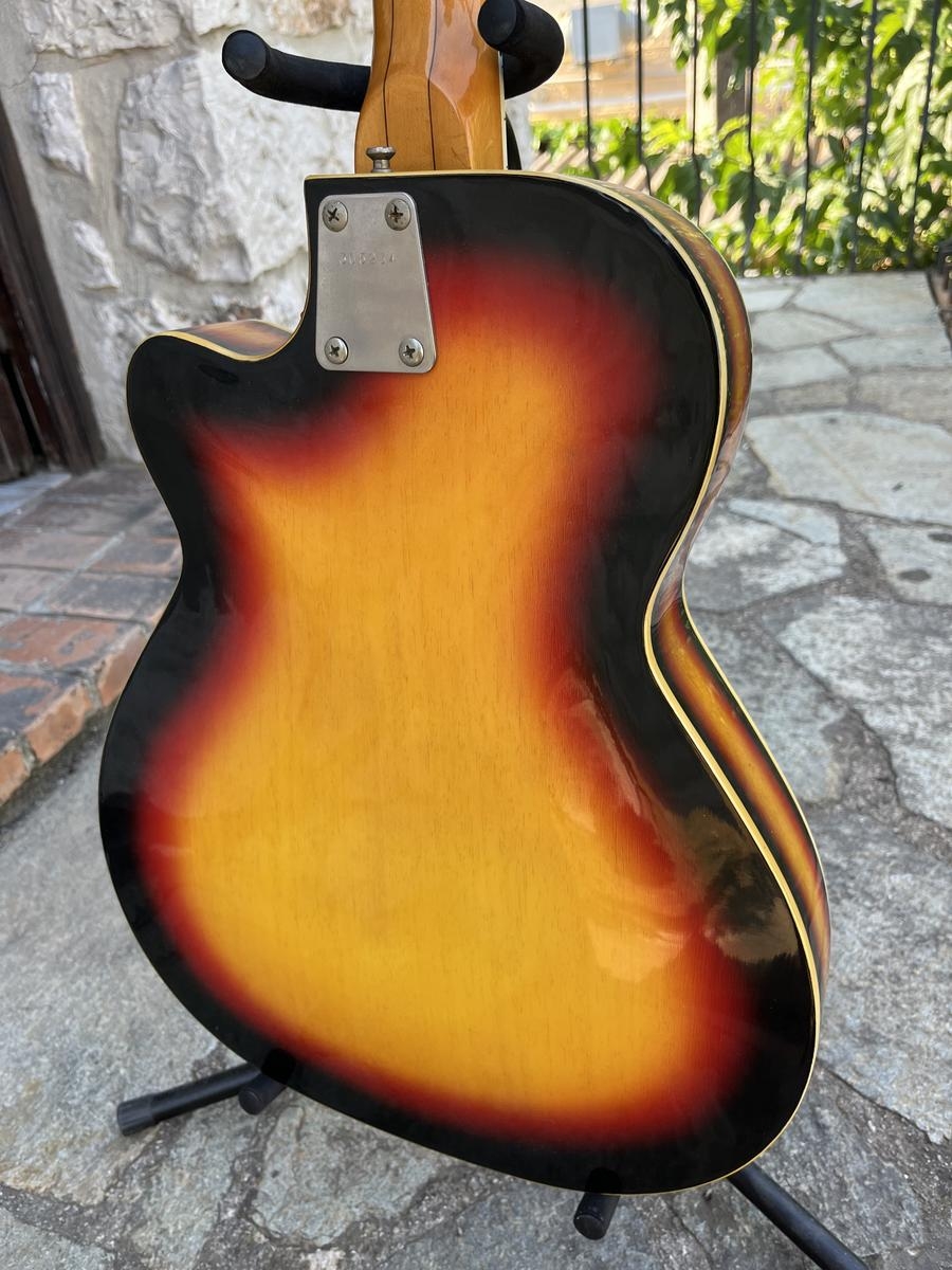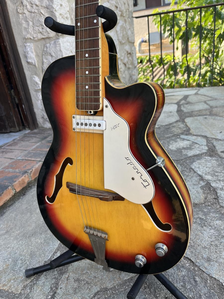 Cette guitare acoustique 6 cordes capture l'essence du design vintage avec sa construction élégante hollow body. Fabriquée en Italie dans les années 60, elle se distingue par son caractère unique, de la frette zéro à son étui original inclus, garantissant ainsi non seulement une protection optimale mais aussi un maintien constant de l'accordage.