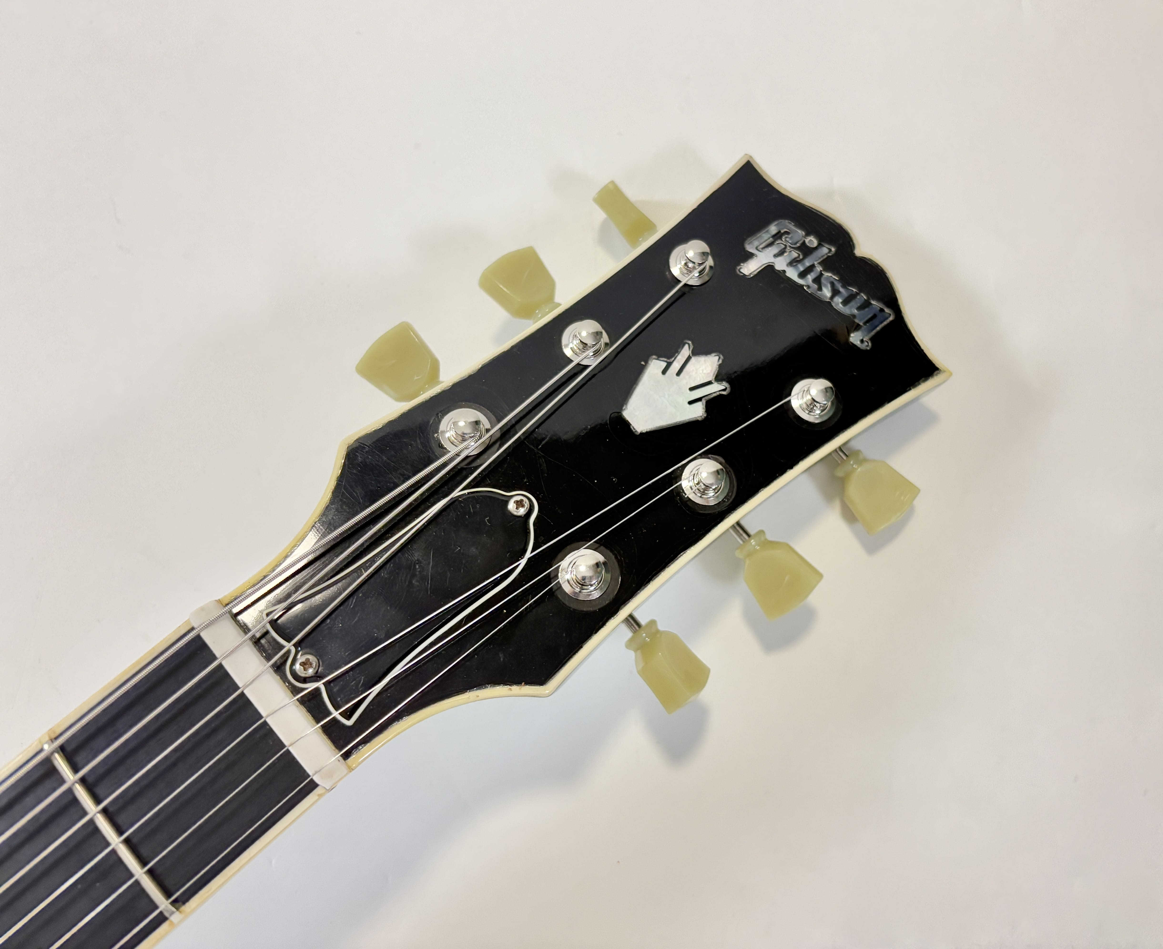 Cette Les Paul Robot est rare ! Alors que les modèles Studio sont généralement assez dépouillés en termes de finitions, cette Robot se démarque avec une touche en ébène, un binding sur le manche et la tête, de superbes logos avec incrustation “crown”, et bien plus encore. La Robot intègre normalement le système d’accordage automatique Tronical (précurseur du G-Force) ; ici, il a été remplacé par des mécaniques Gotoh à blocage.
