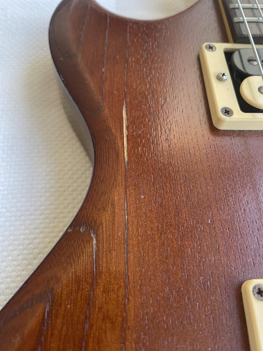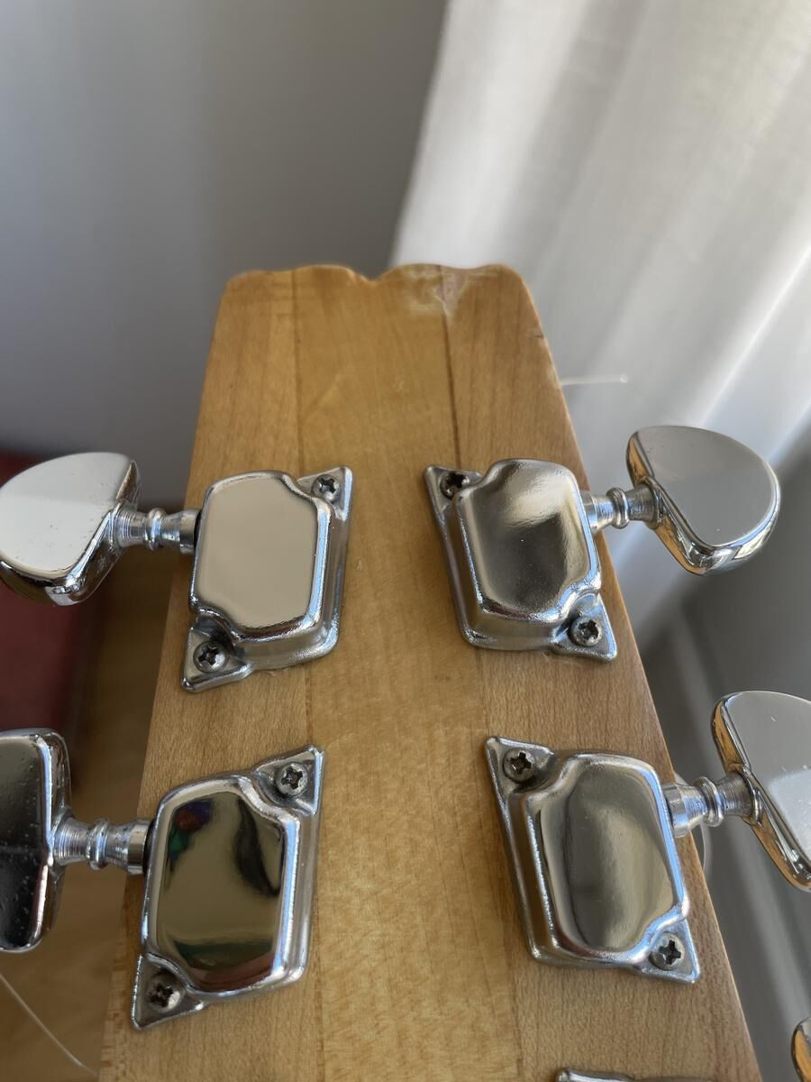 Cette guitare appartenait initialement à un gaucher. On me l'a offerte pour m'inciter à me mettre à la guitare mais je ne m'y suis jamais vraiment mis donc elle est a été très peu utilisée.