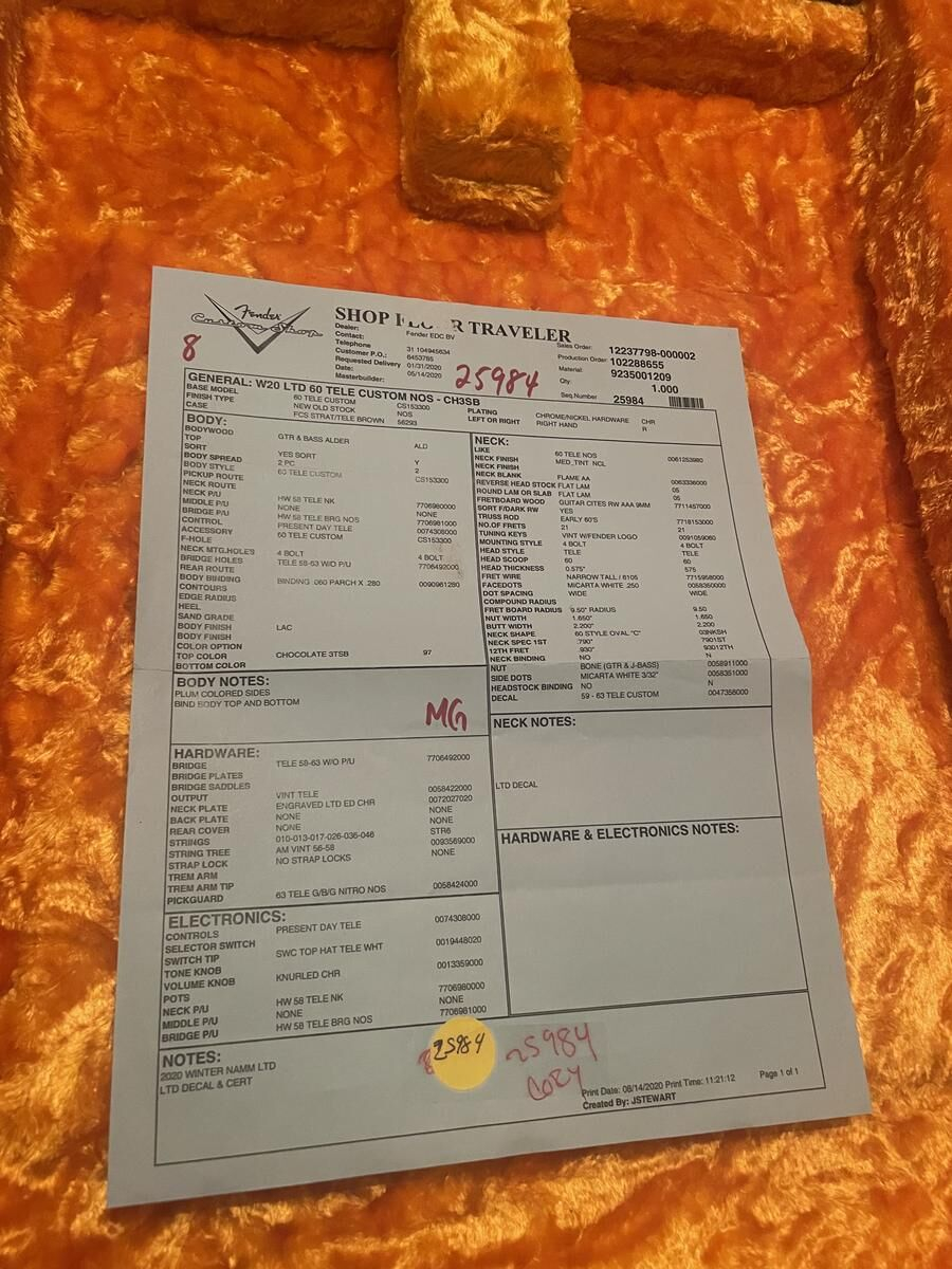 Pour le financement d'une autre acquisition musicale, je voudrais vendre une guitare Fender Custom Shop W20 LTD ED Custom NOS - Chocolate 3 Color Sunburst neuve, dans son étui et sa boîte d'origine, jamais jouée, avec le certificat d'authenticité, touchée seulement une fois à l'occasion de la vérification et de la séance photo.