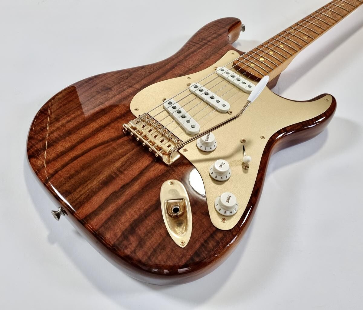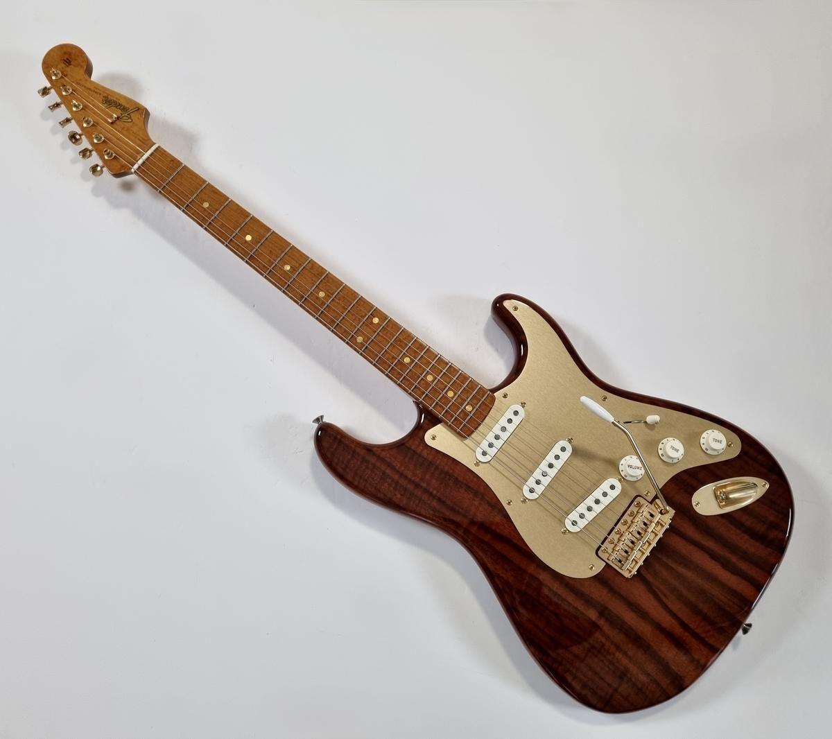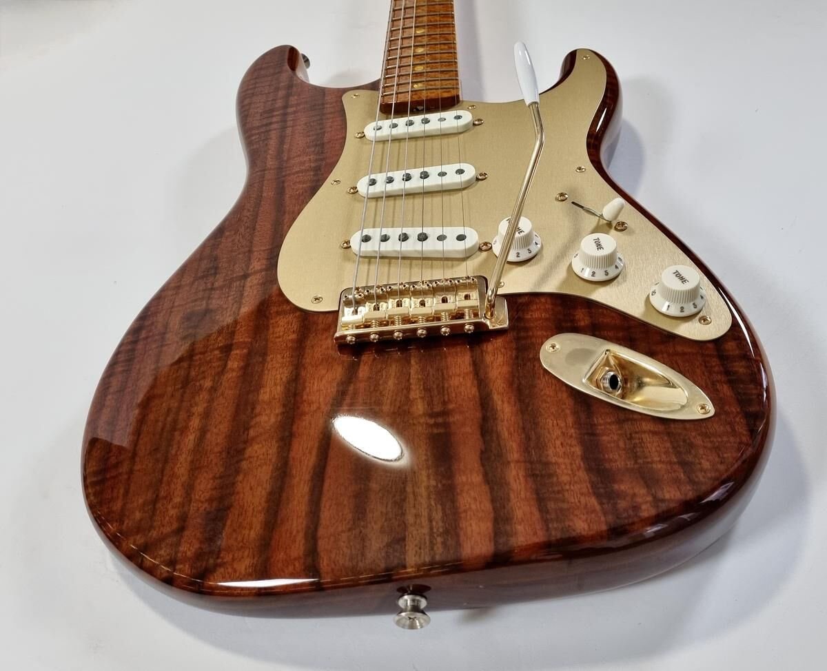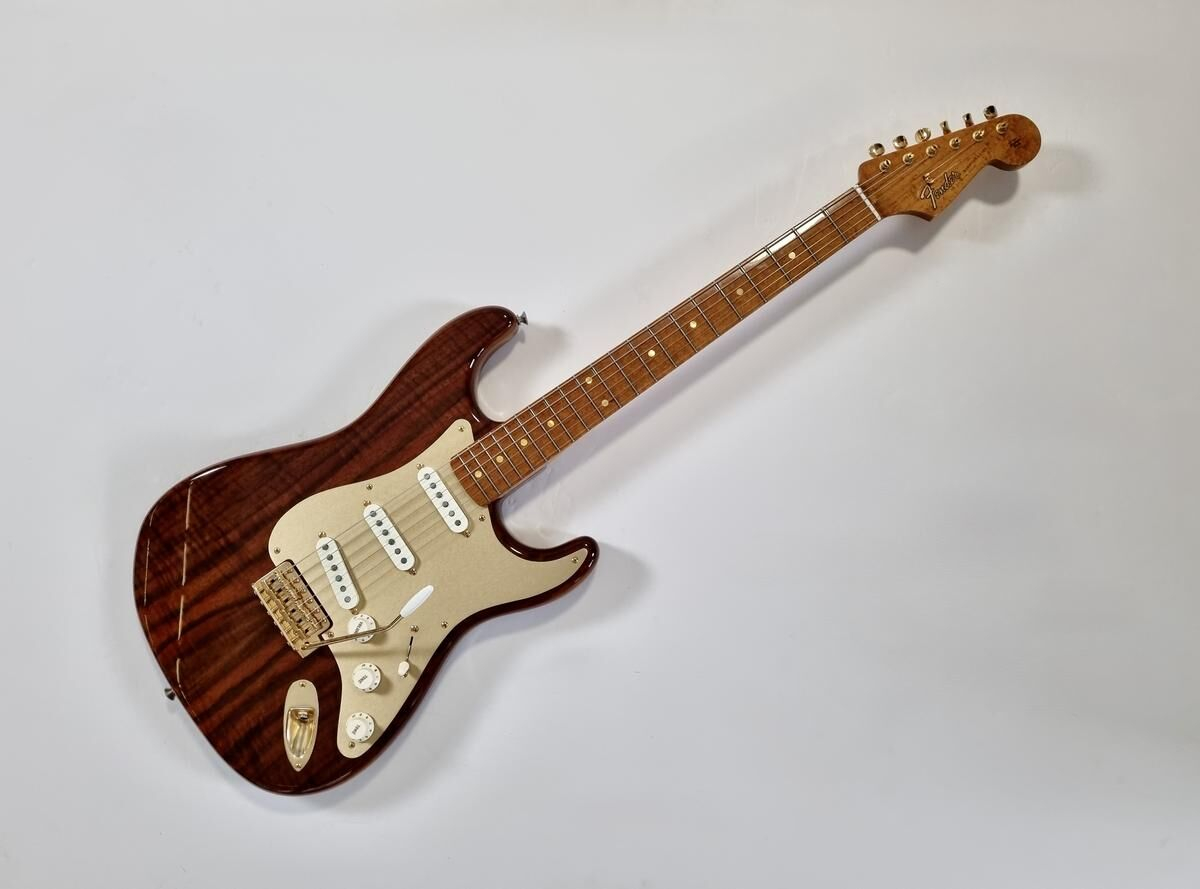 Fender Stratocaster Artisan Claro Walnut 2016 Custom Shop avec finition ambrée tinted.