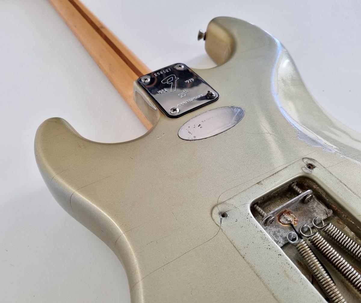 Fender 25ème Anniversaire Stratocaster 1979 Argent Métallique. Tout original à l'exception de l'étui et des pontets !