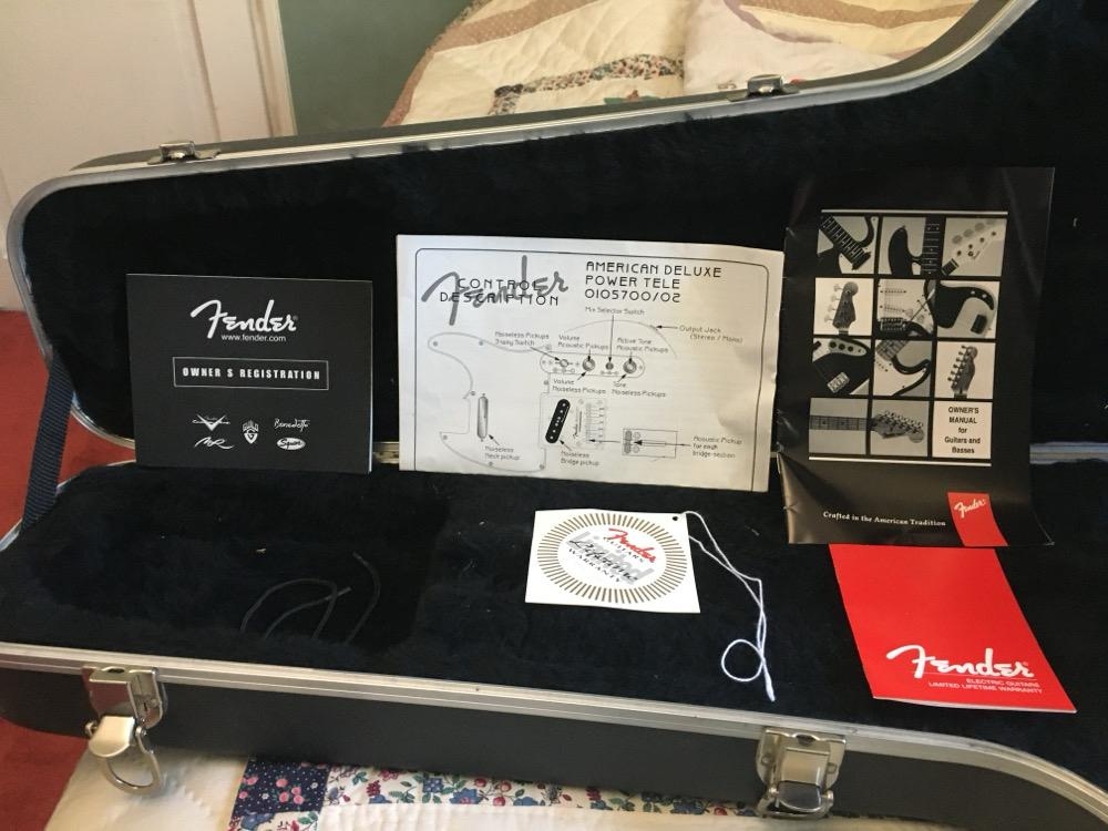 guitare Fender modèle American de luxe power Telecaster with power bridge, fabriquée entre 1999 et 2001, modèle unique, excellent état, vendue avec flight case d’origine.
