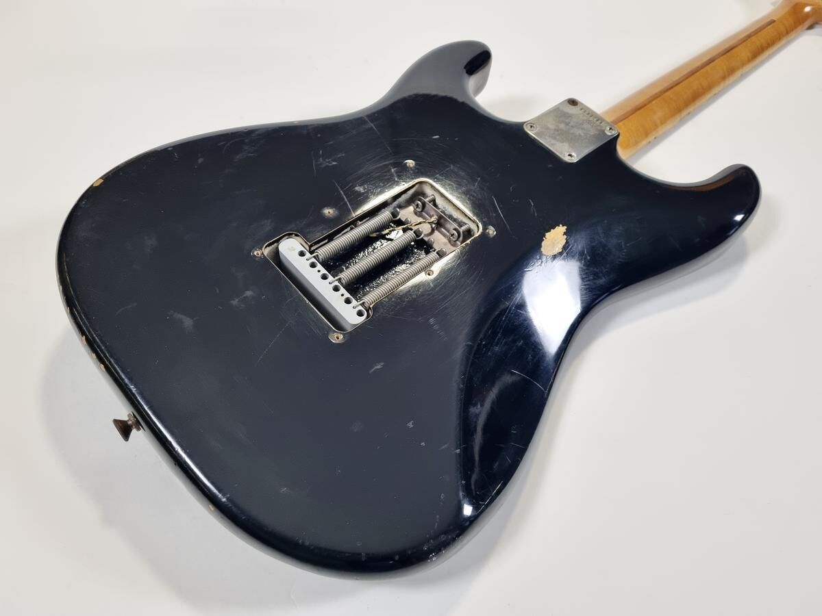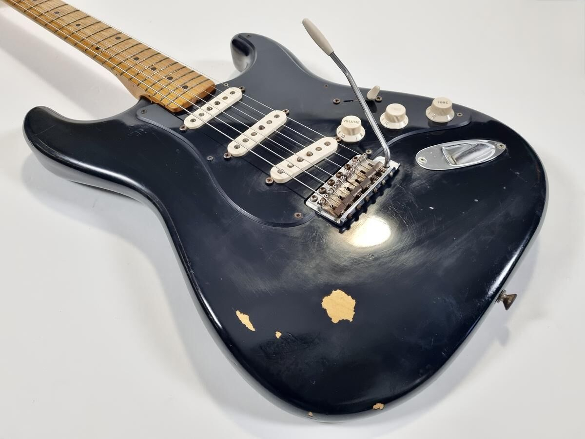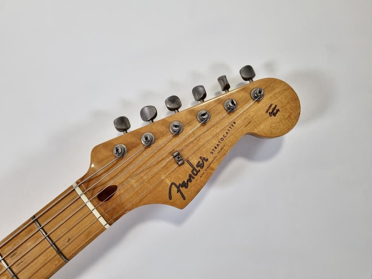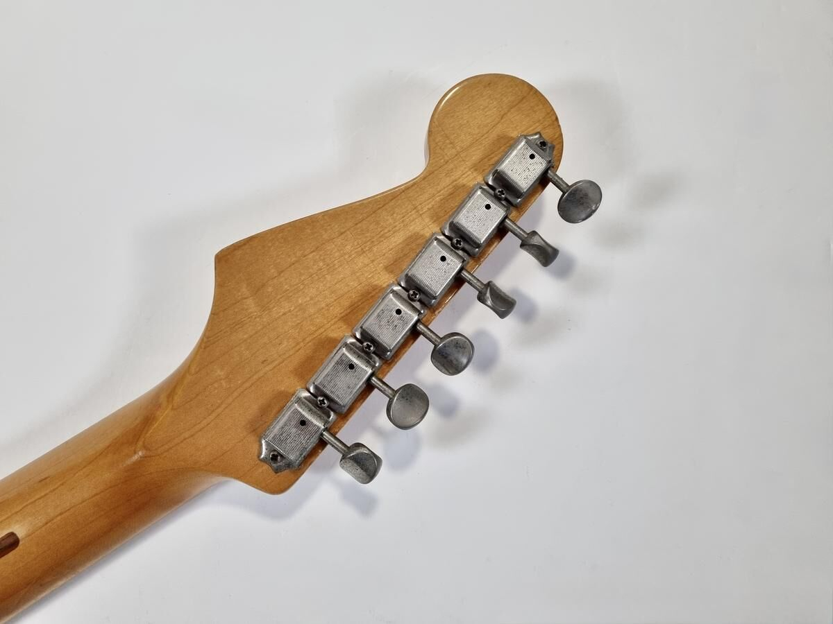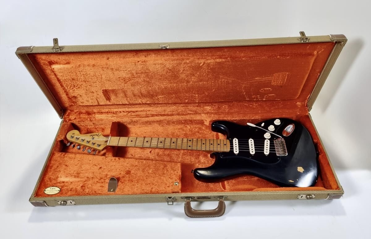 Maintenant remplacées par les American Original, les AVRI étaient dans la gamme Fender juste en dessous des Custom Shop. Cet exemplaire date de 2003 et arbore une belle patine bien vintage ! Au programme manche soft V, touche érable, radius 7.25 pouces, frettes fines… Une partie de l’électronique a été refaite et le pickguard a été remplacé donnant ainsi à cette Strat un look David Gilmour. Vendue dans son étui tweed d’origine.
