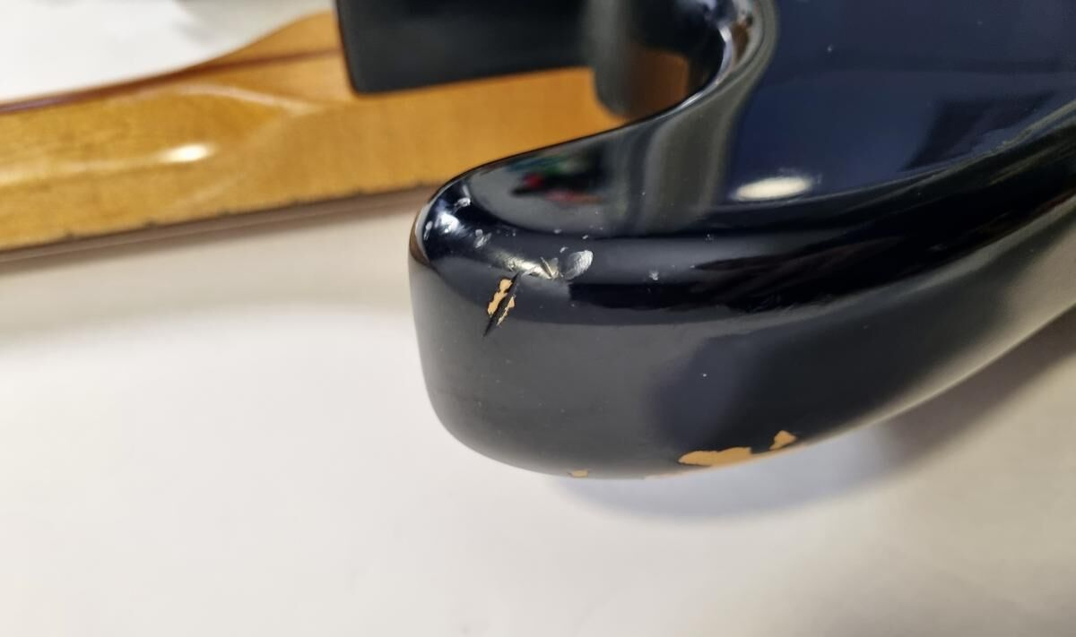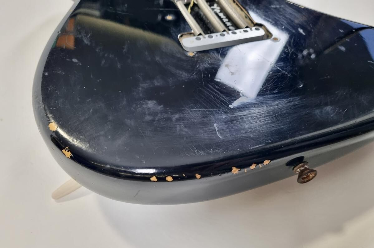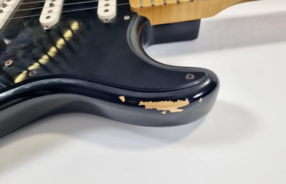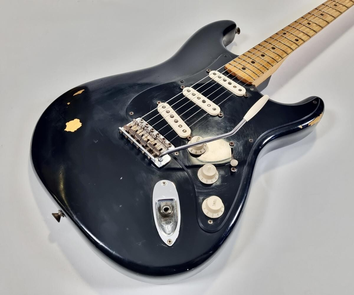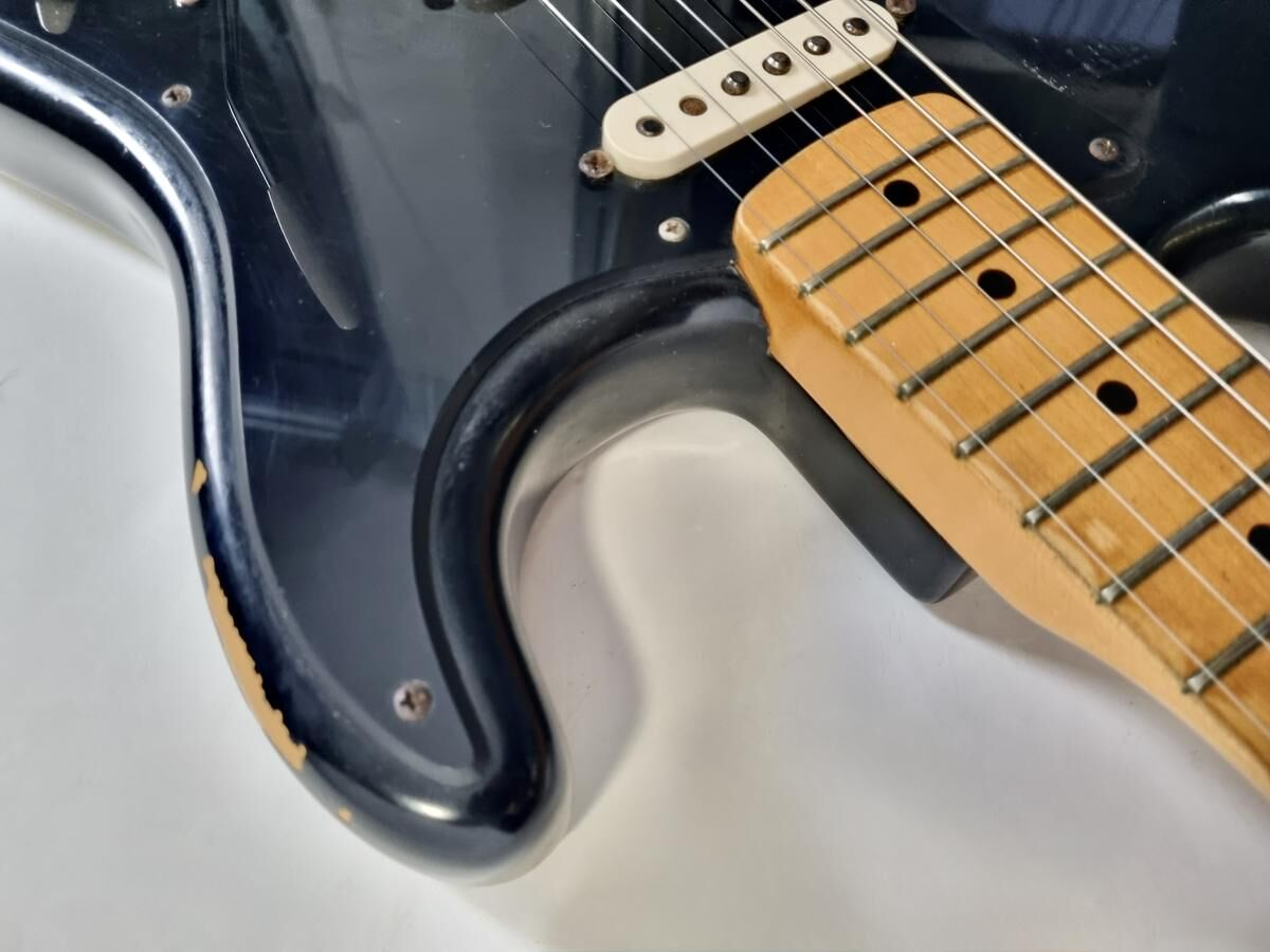 Maintenant remplacées par les American Original, les AVRI étaient dans la gamme Fender juste en dessous des Custom Shop. Cet exemplaire date de 2003 et arbore une belle patine bien vintage ! Au programme manche soft V, touche érable, radius 7.25 pouces, frettes fines… Une partie de l’électronique a été refaite et le pickguard a été remplacé donnant ainsi à cette Strat un look David Gilmour. Vendue dans son étui tweed d’origine.