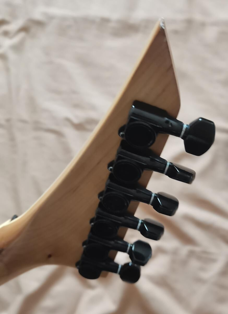 Accastillage plaqué noir légèrement patiné par le temps c'est une guitare japonaise vintage