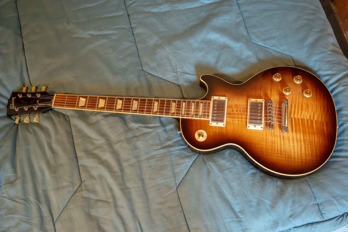 je me sépare de ma guitare Gibson les paul standard de 2005 Desert Burst. Profil de manche en forme de C des années 60. Comprend son étui Gibson d'origine, son pickguard (jamais monté) et ses documents d'origine.