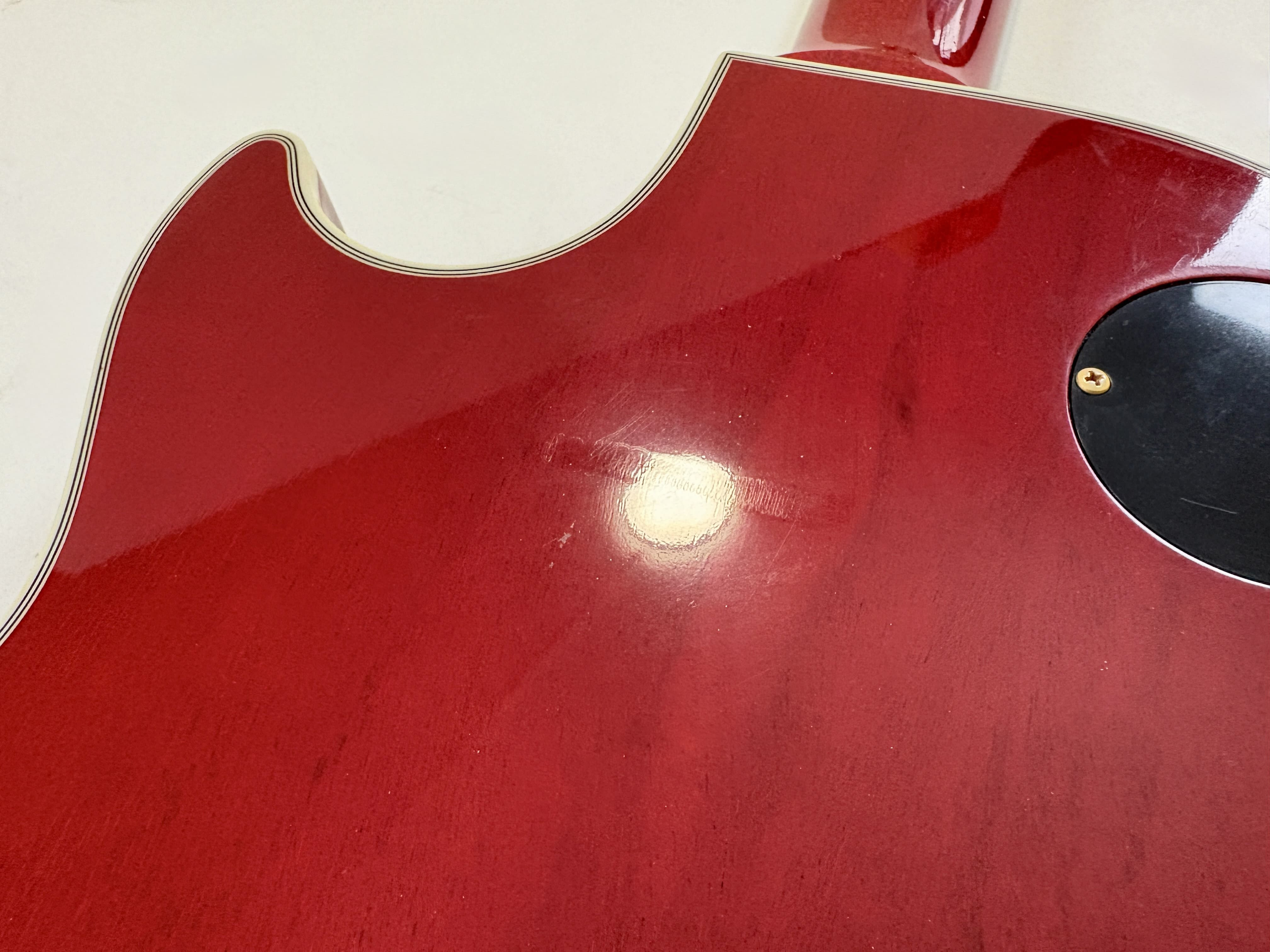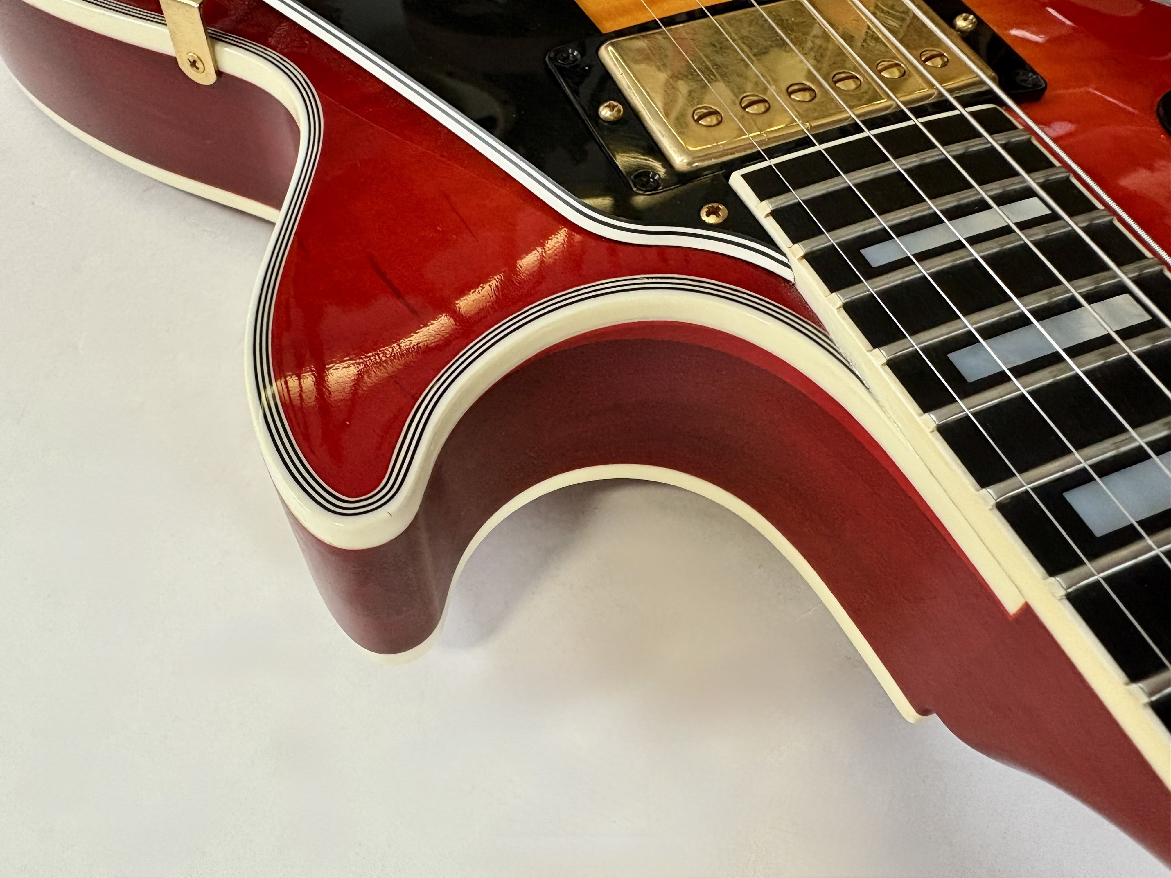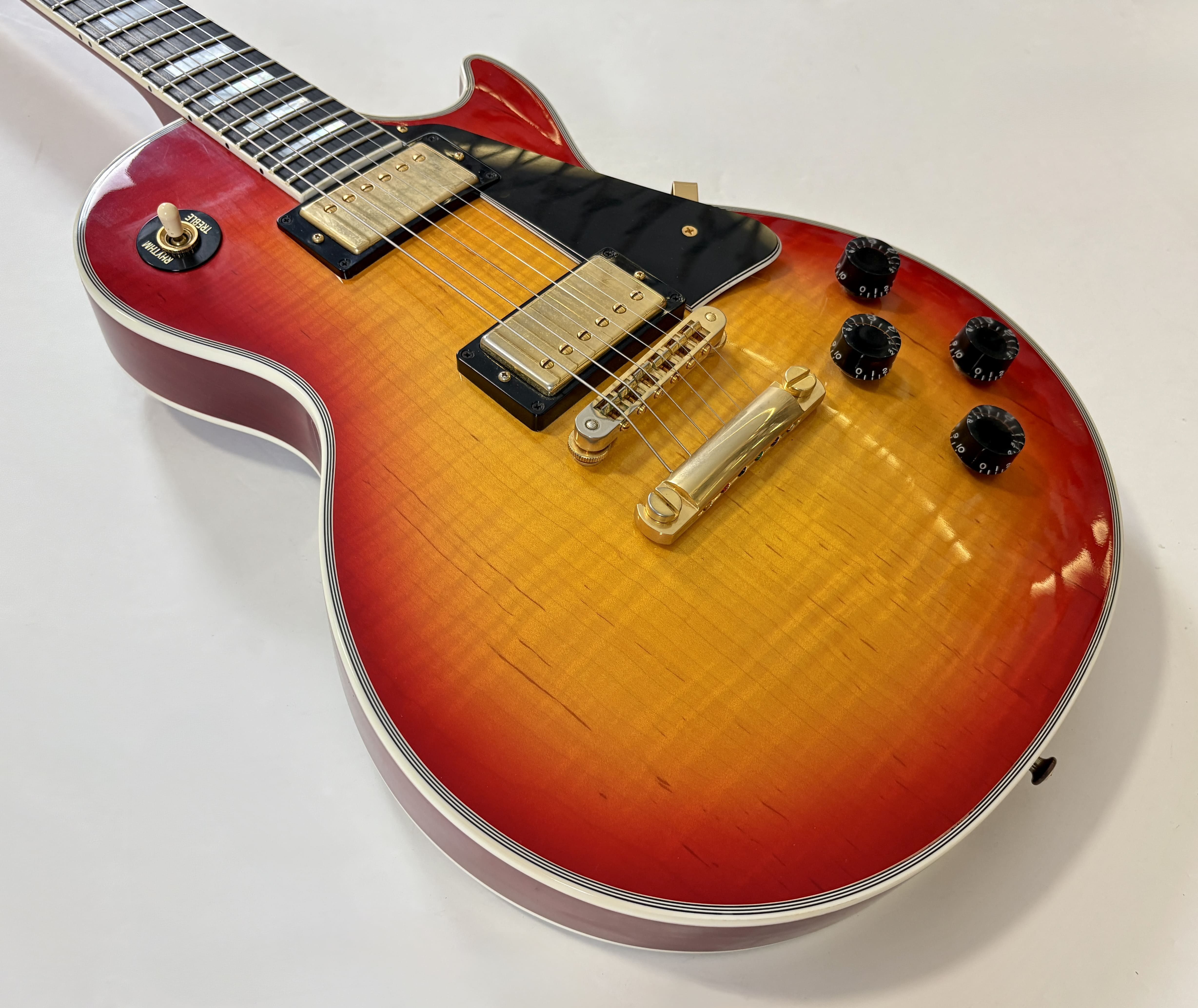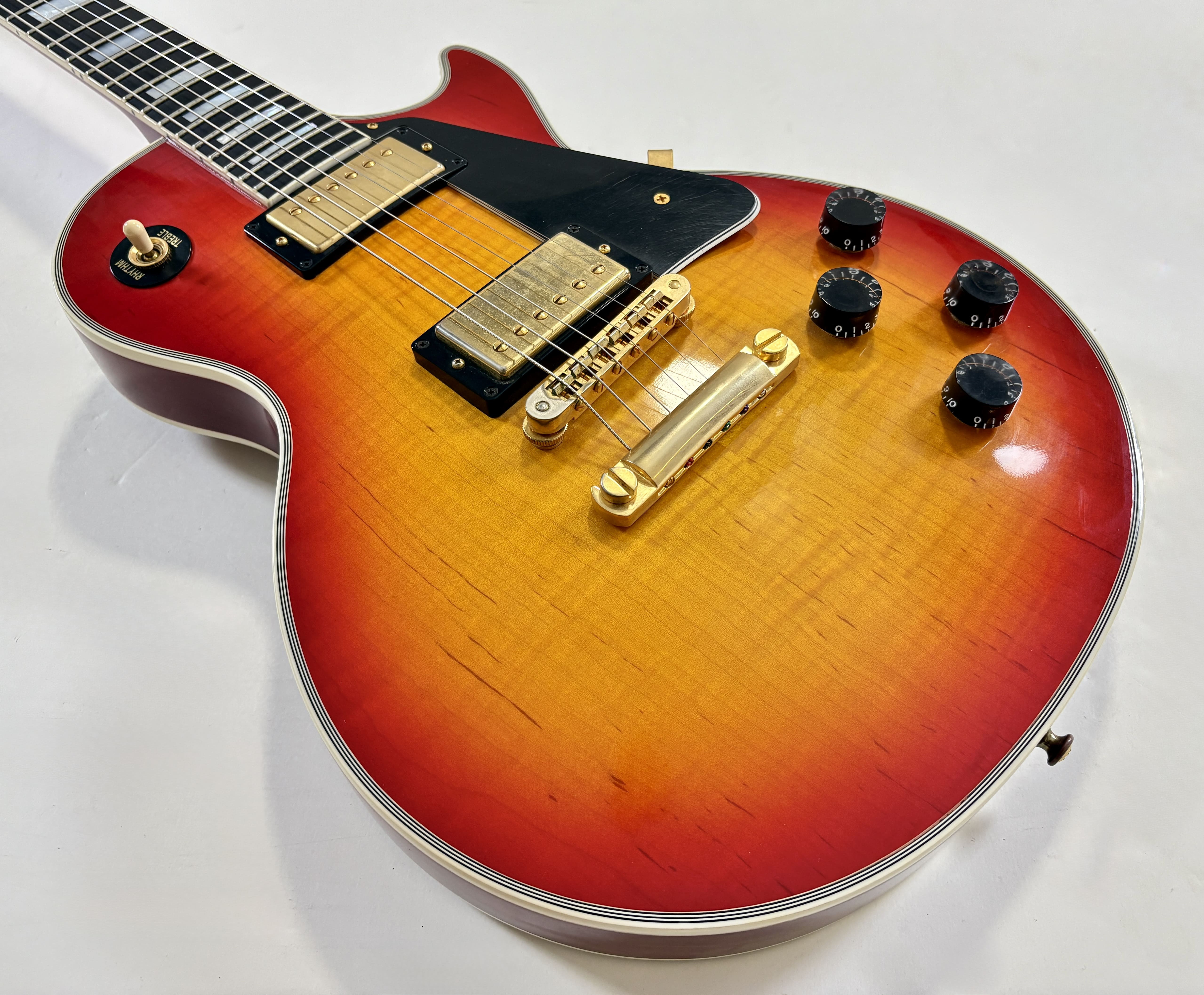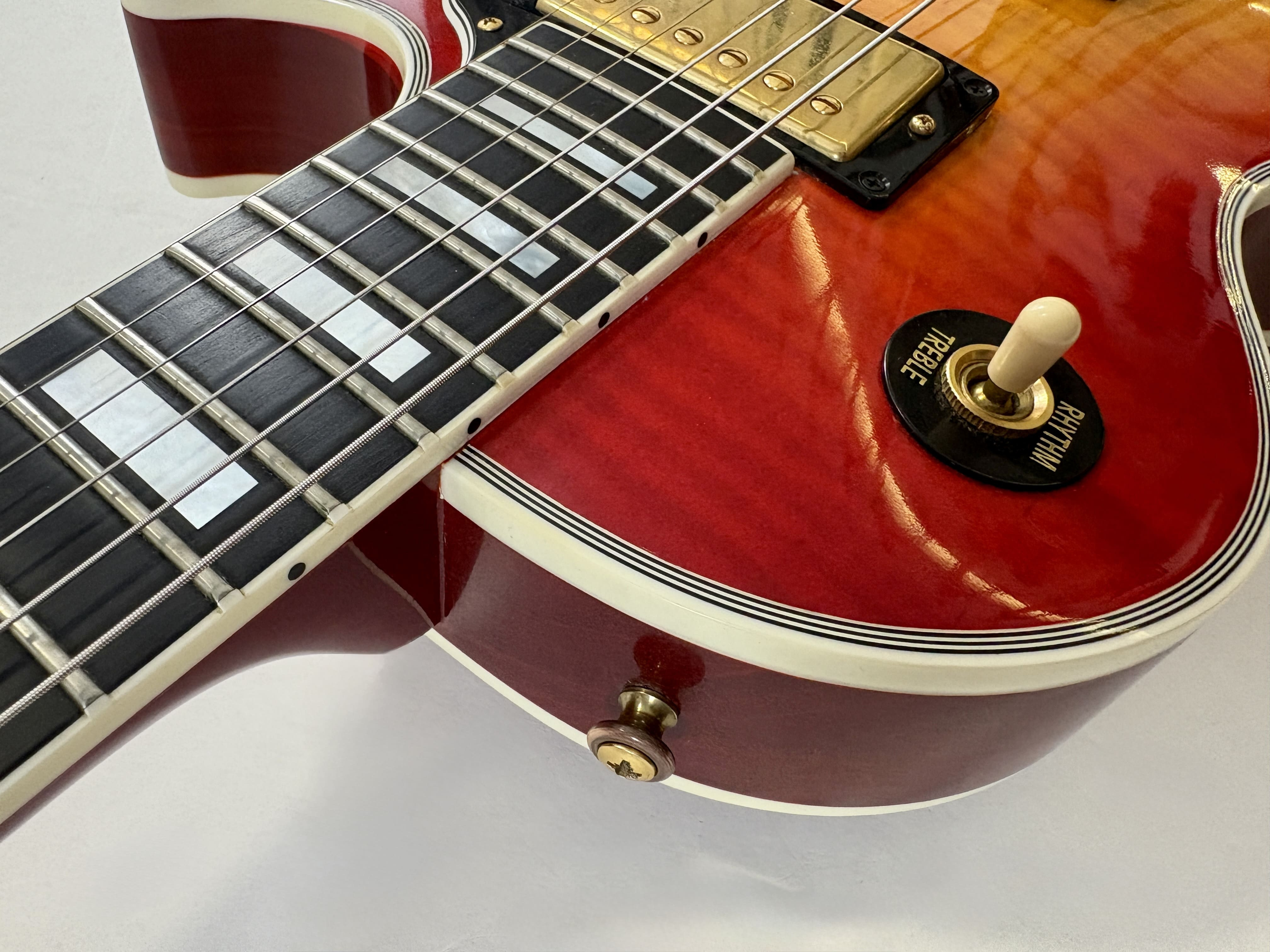 Introduite en 1954, la Custom se trouve au sommet de la gamme : touche en ébène, binding au dos, autour de la table et de la touche, logo en diamant séparé, etc. Elle offre bien plus de finitions qu'une Standard. Ce modèle de la Custom Shop est équipé de la paire de micros classique : un 490R doux en position manche et un puissant 498T en position chevalet. Ici, elle n'est pas en ébène mais en Heritage Cherry Sunburst avec une belle table en érable flammé. Le corps et le manche sont bien sûr en acajou. En très bon état, vendue avec son certificat d'authenticité et son étui d'origine. Plus de photos et de détails sur demande. Expédition dans le monde entier disponible.