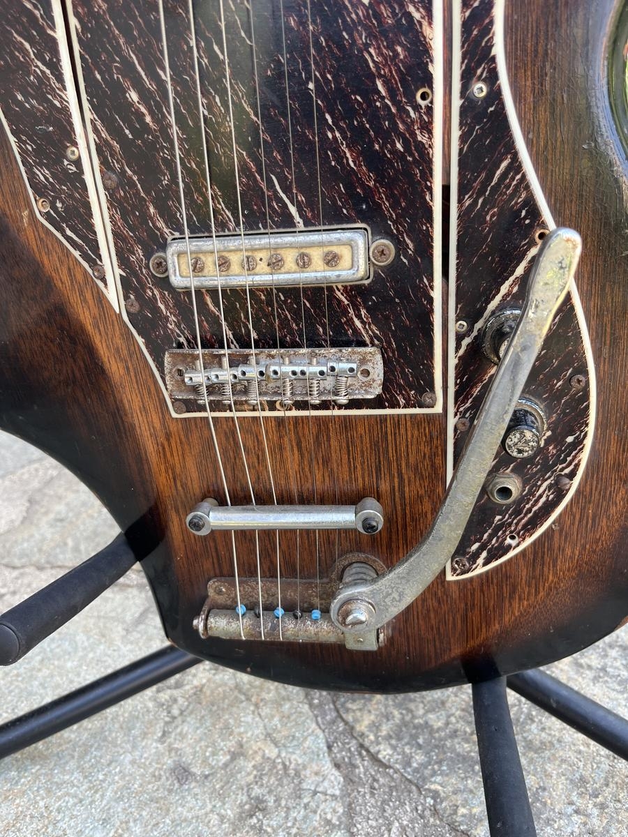 Cette guitare solidbody est une fenêtre sur le passé, offrant non seulement un son vintage captivant mais aussi une pièce de l'histoire de la fabrication de guitares. Son authenticité et sa préservation originale en font un choix idéal pour les puristes de la musique et les collectionneurs avisés.