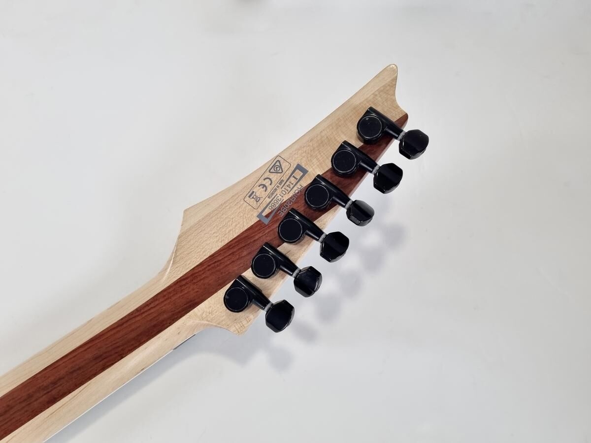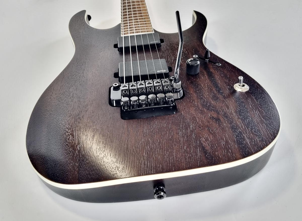 Cette Ibanez se dote d’une paire de micros EMG, un 60 en position manche et un 81 en chevalet. Le manche au profil Nitro Wizard est fait de bubinga et de noyer avec une touche en palissandre, sur un corps en acajou.