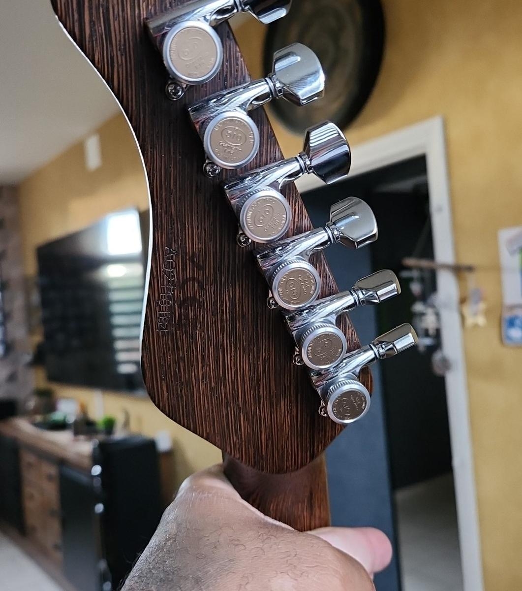 La lutherie et la construction de la guitare sont irréprochables. La guitare a été très bien sculptée, tous les bords sont vraiment arrondis, l’accès aux aigus est vraiment facile, ce n’est pas uniquement ergonomique mais vraiment une pièce d’art.