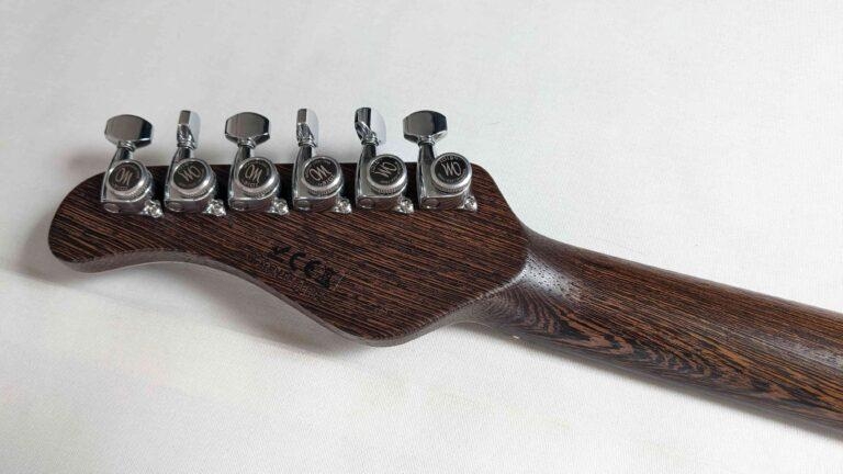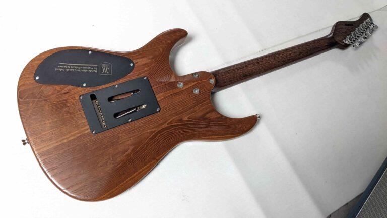 Le manche est fin, il est parfaitement fini bien entendu avec les bords de la touche et les bords de frettes bien arrondis. La guitare est pensé autour de l’ergonomie, elle est équilibrée, elle n’est pas lourde, elle se joue super facilement. Elle reste parfaitement accordée. Le vibrato fonctionne très bien.