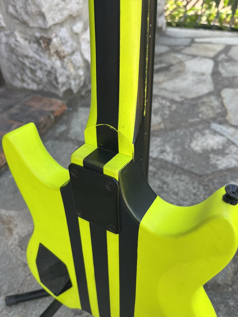 Cette guitare solidbody headless affiche un design moderne avec sa finition jaune fluo et noire, complétée d'un système de vibrato performant pour une grande flexibilité d'expression musicale. Son corps léger permet une aisance de jeu accrue lors de performances live ou de sessions en studio.