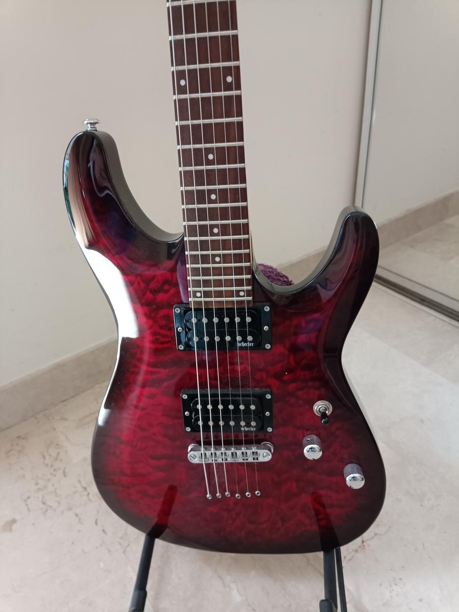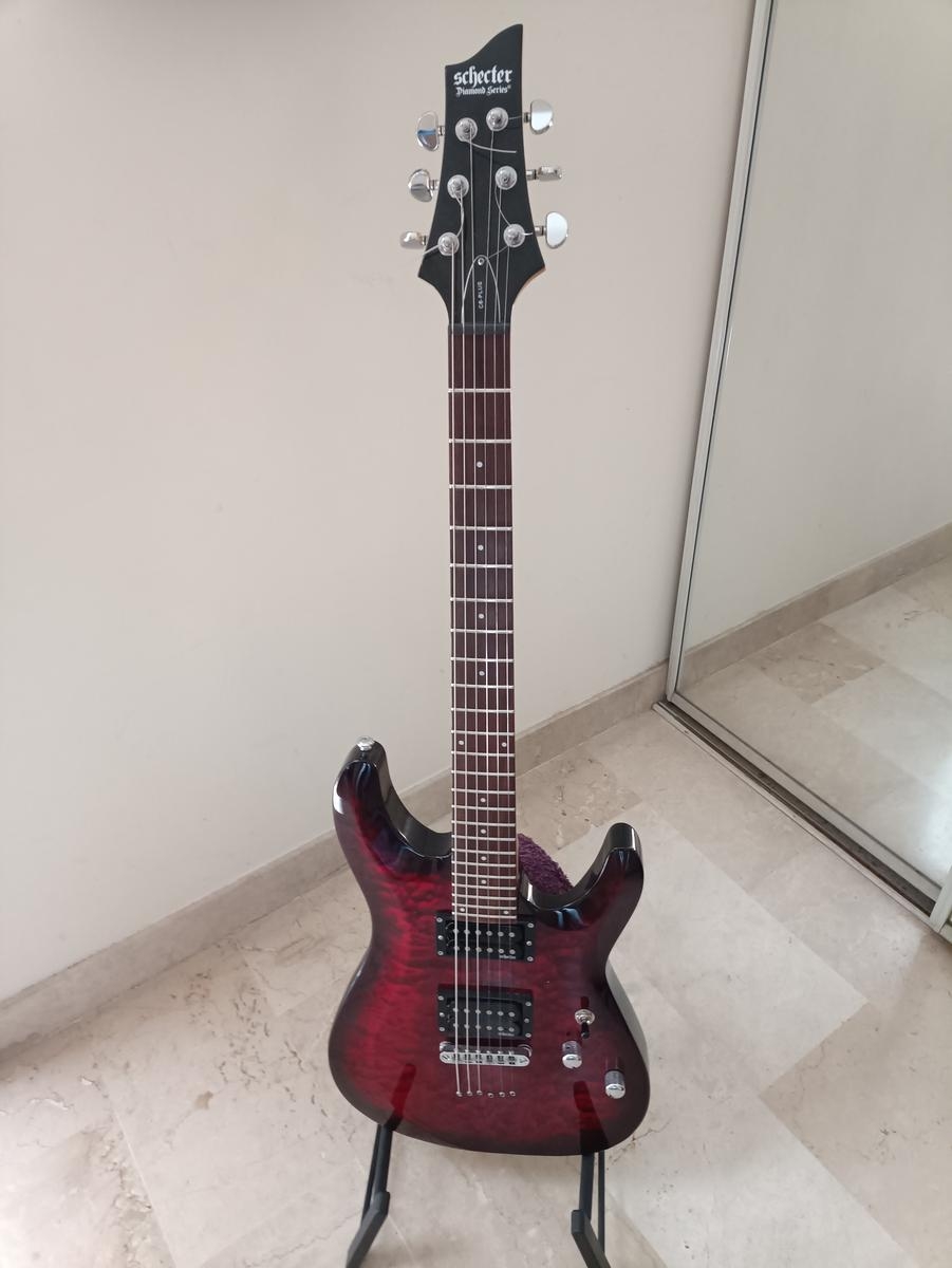 Je propose à 260€ une guitare SCHECTER C-6Plus Black Cherry Burst fabriquée en Indonésie 24 frettes Jumbo manche érable, touches palissandre, corps tilleul, 2 Humbuckers Schecter Diamant plus, utilisée essentiellement en home studio, à retirer de préférence sur Cannes 06. PARFAIT ETAT