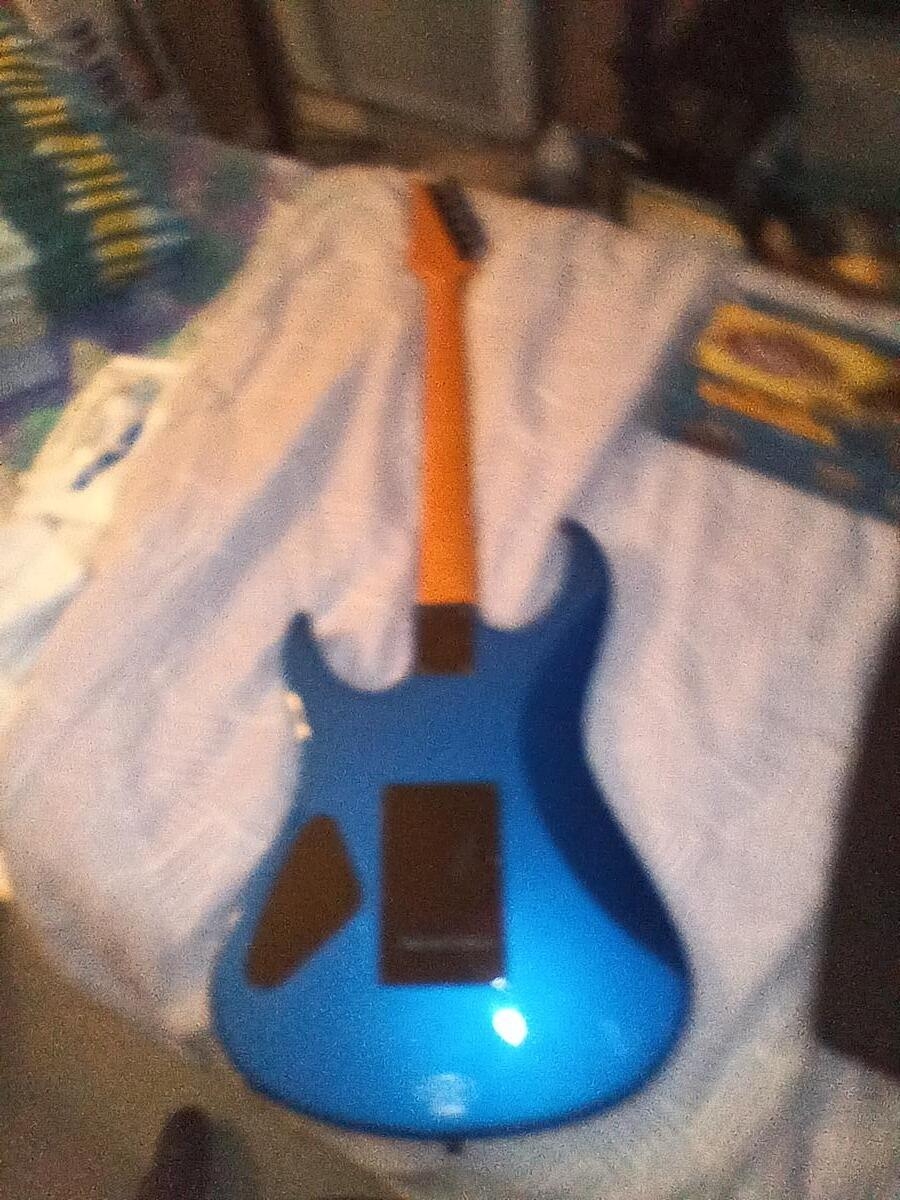 À vendre guitare Yamaha couleur bleu métallisé, équipé de double micro on mange et au chevalet plus un micro central et mécaniques sont nickel électronique aussi elle fonctionne bien, elle possède un deux petits éclats très peu visible sur le bas cela ne gêne absolument rien sans fonctionnement ni son esthétique au vu de l'emplacement de ceci, mes cordes sont neuves aucun problème au niveau des fraises elle a été réglé, il y a plus qu'à brancher à gratter soit vous pouvez vous calmer et endormir les voisins soit vous pouvez vous énerver et balancer du gros métal et réveiller la mémé d'à côté à vous de voir mais pour ce style de guitare elle a vraiment un très bon son, étant passé sur une Ltd c'est quand même autre chose, je dois m'en séparer, j'espère qu'elle fera le bonheur de quelqu'un, c'est une guitare simple pratique et pas lourde du tout, des micros sont plus que corrects et pour du Yamaha et de quand même bonne facture elle n'a jamais eu de souci.