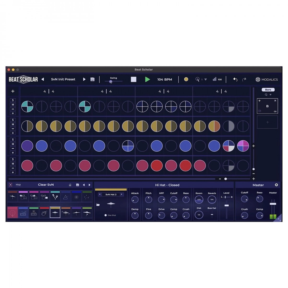 Vous avez la liberté d'expérimenter et de décider comment votre rythme se développe. Avec Beat Scholar, vous ne créez pas seulement des rythmes, vous explorez et manipulez le rythme de manière jamais vue auparavant, repoussant les limites de votre imagination musicale.