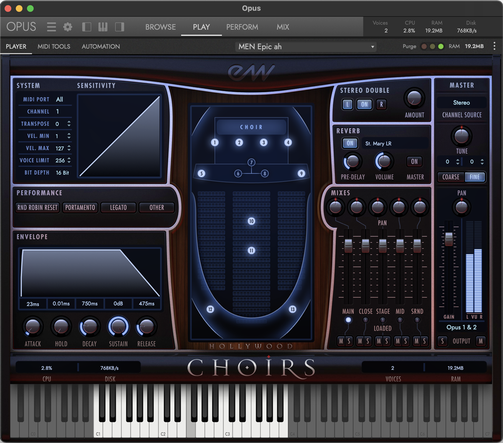 • Maintenant inclus dans OPUS, avec des téléchargements individuels, des sélecteurs de touches personnalisés et des dizaines d'outils MIDI et d'effets de mixage.
