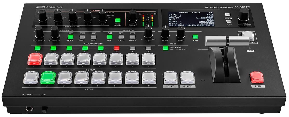 Équipé à la fois d'entrées SDI et HDMI mises à l'échelle, le Roland V-60HD gère efficacement les sources de caméra, ainsi que les données, les ordinateurs, les tablettes et autres sources vidéo. Ses fonctionnalités audio complètes comprennent une table de mixage 18 canaux avec effets, un audio incorporé multi-canal, des entrées analogiques XLR et RCA, et un audio séparé des sources numériques SDI ou HDMI. Le système de comptage exclusif de Roland utilise un routeur sans fil pour envoyer les informations de comptage à votre appareil intelligent. Vous bénéficierez également d'une commande à distance via Mac ou PC. Pour la production en direct, les environnements éducatifs, les lieux de culte, les théâtres, et plus encore, le V-60HD est une solution complète de production et de diffusion en direct.