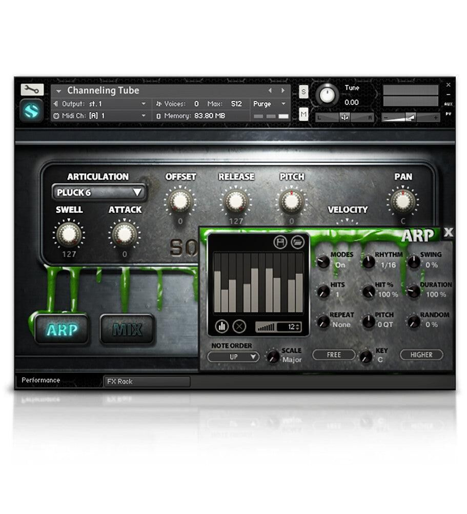 Il propose 5 ensembles d'instruments acoustiques, enregistrés dans une chambre lumineuse avec des positions de micro ajustables rapprochées et lointaines. Le "Astral Dirge Pipe" est un dispositif sur mesure soniquement similaire à un didgeridoo accordé à plusieurs clés. Nous avons enregistré des soutiens chromatiques, des staccatos et des effets. Le "Channeling Tube" est un classique "Thunder Tube" à ressort, joué à la fois de manière percussive et semi chromatique en pinçant la corde à différentes longueurs. La "Conjuring Bell" est une magnifique paire de carillons mélodieux avec un trou sonore à la base permettant au pouce de créer des effets "wah-wah" lorsqu'ils sonnent. Le "Spectral Moaner" est un instrument à vent bourdonnant balancé dans un arc aérien pour produire une série harmonique à mesure que la vitesse augmente. Le "Demon String" est une guitare acoustique équipée d'un synthétiseur de guitare Vo-96 qui produit des drones organiques infiniment auto-soutenus riches en harmonie. Nous avons enregistré toute la gamme des pincements de cordes, ainsi que des accords majeurs, mineurs et octaves. Enfin, nous avons conçu 60 ambiances et paysages sonores mystérieux, de science-fiction et d'horreur. Chaque préréglage comprend des fonctionnalités de contrôle de pointe, des effets d'empilage et des convolutions surnaturelles pour vous offrir un contrôle créatif optimal.