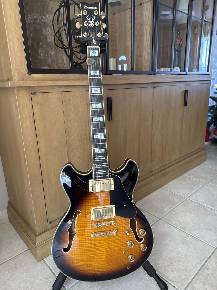Guitare électrique IBANEZ référence JSM10-VYS état comme neuf très très peu utilisé avec le trépied hercule plus sa housse rigide et avec aussi un ampli fender (vraiment comme neuf).