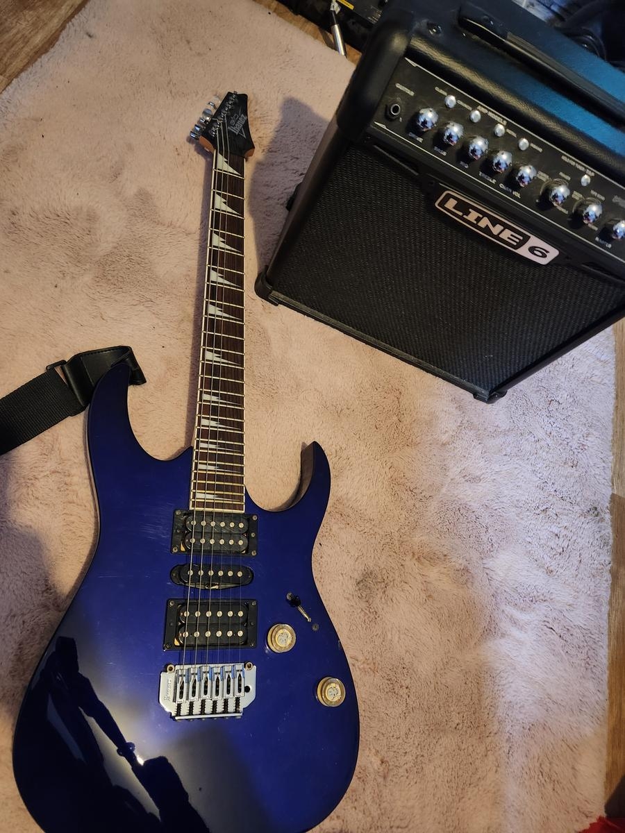 ibanez Guitare électrique avec son ampli Line6 Spider 15