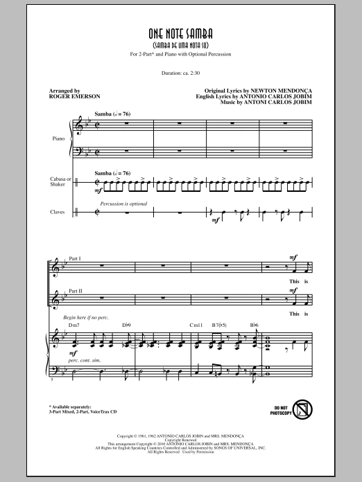 Auteurs : Roger Emerson, Newton Mendonça, Antonio Carlos Jobim