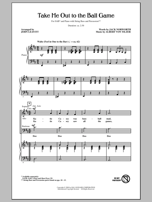 Auteurs : John Leavitt, Jack Norworth, Albert von Tilzer