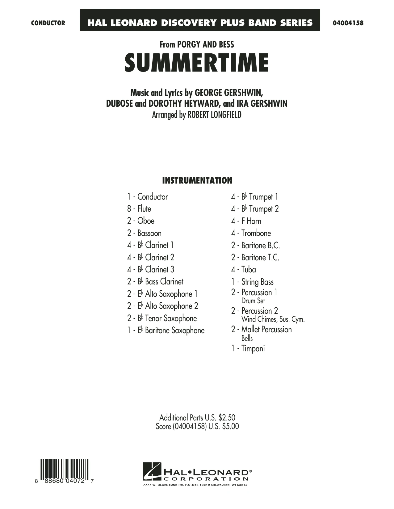 Summertime (from Porgy and Bess) - Conductor Score (Full Score)