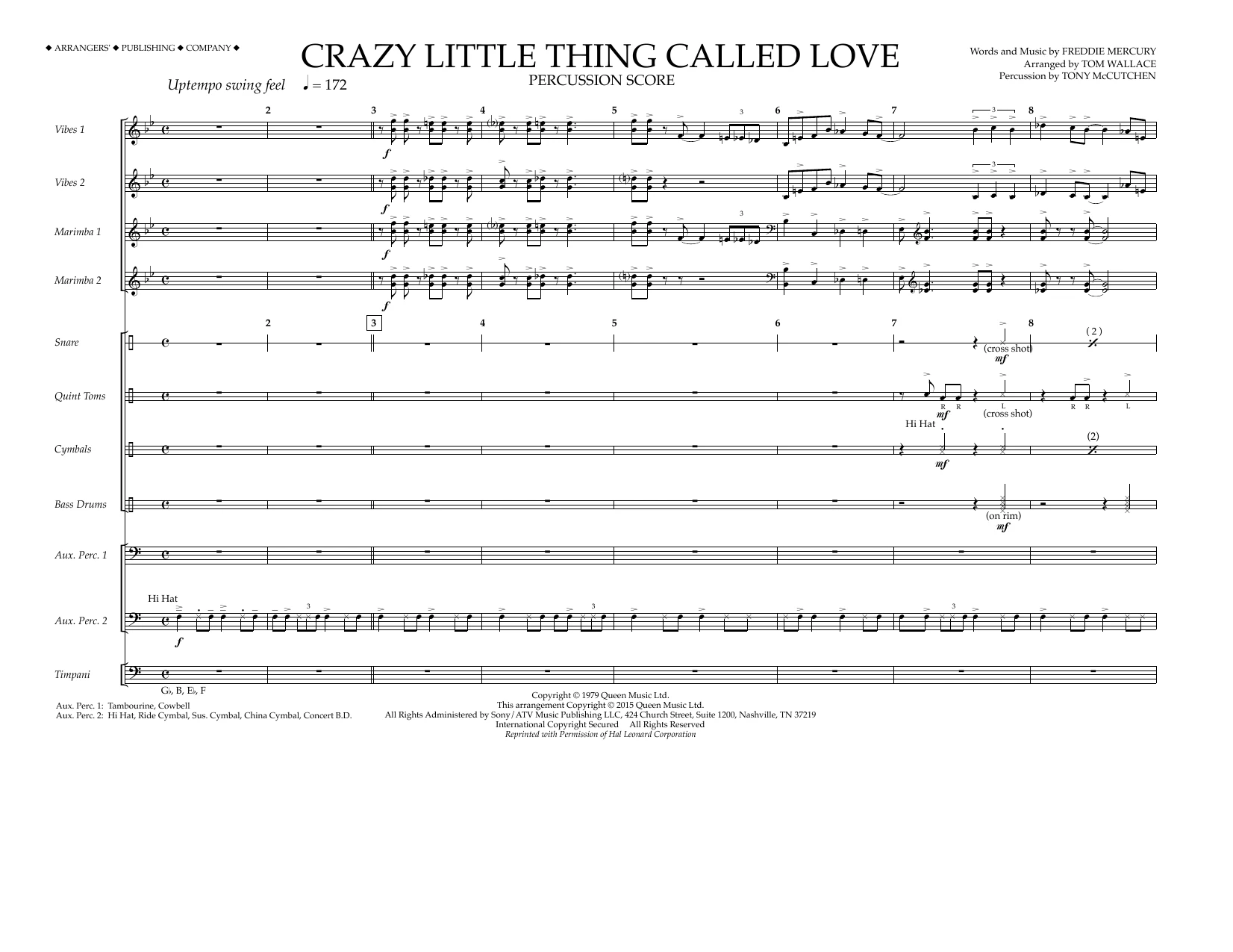 Crazy Little Thing Called Love - Percussion Score