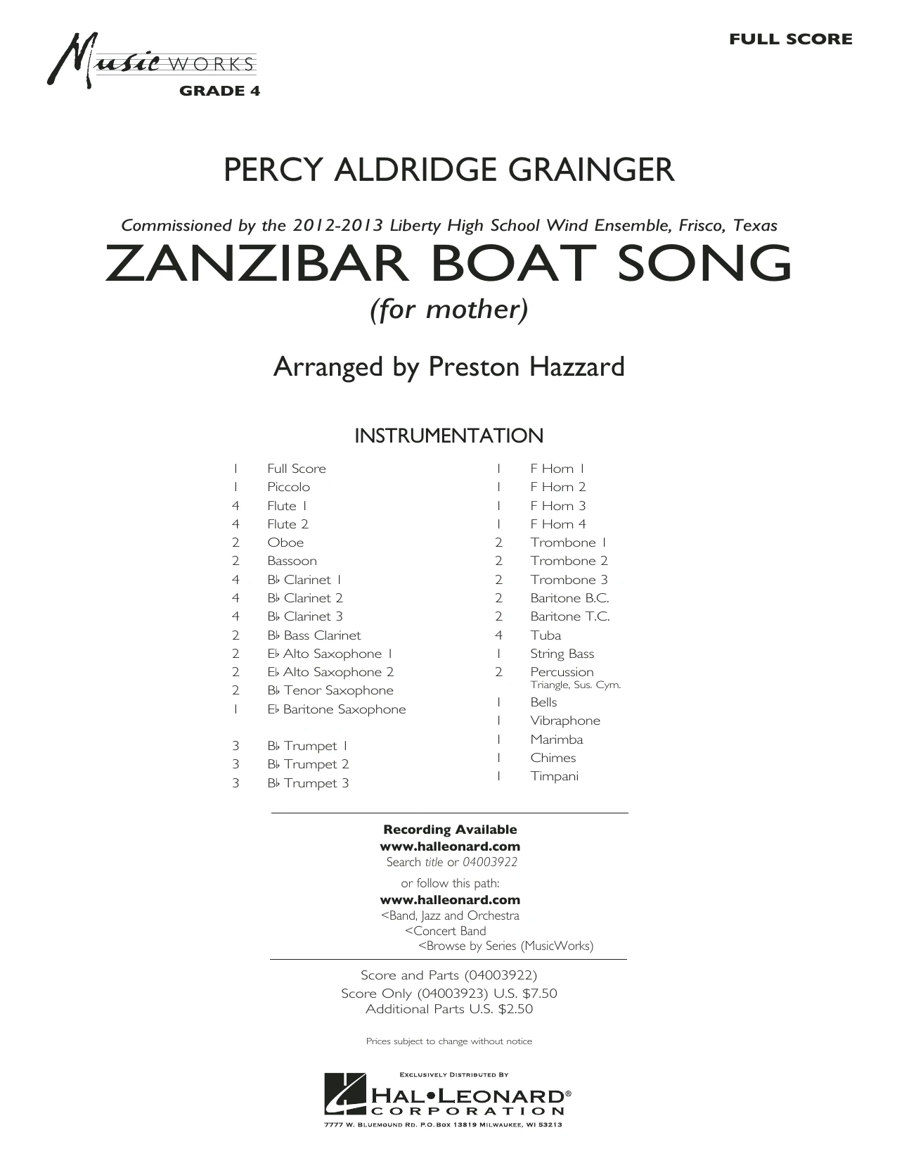 Zanzibar Boat Song - Conductor Score (Full Score)