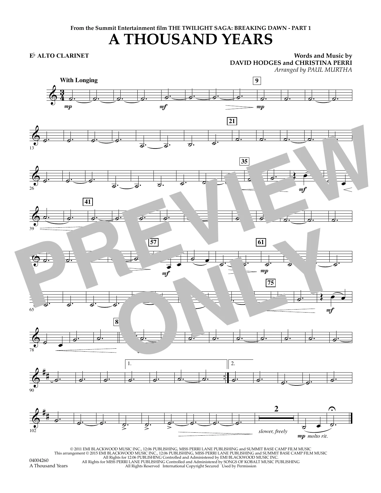 A Thousand Years (from The Twilight Saga: Breaking Dawn, Part 1) - Eb Alto Clarinet