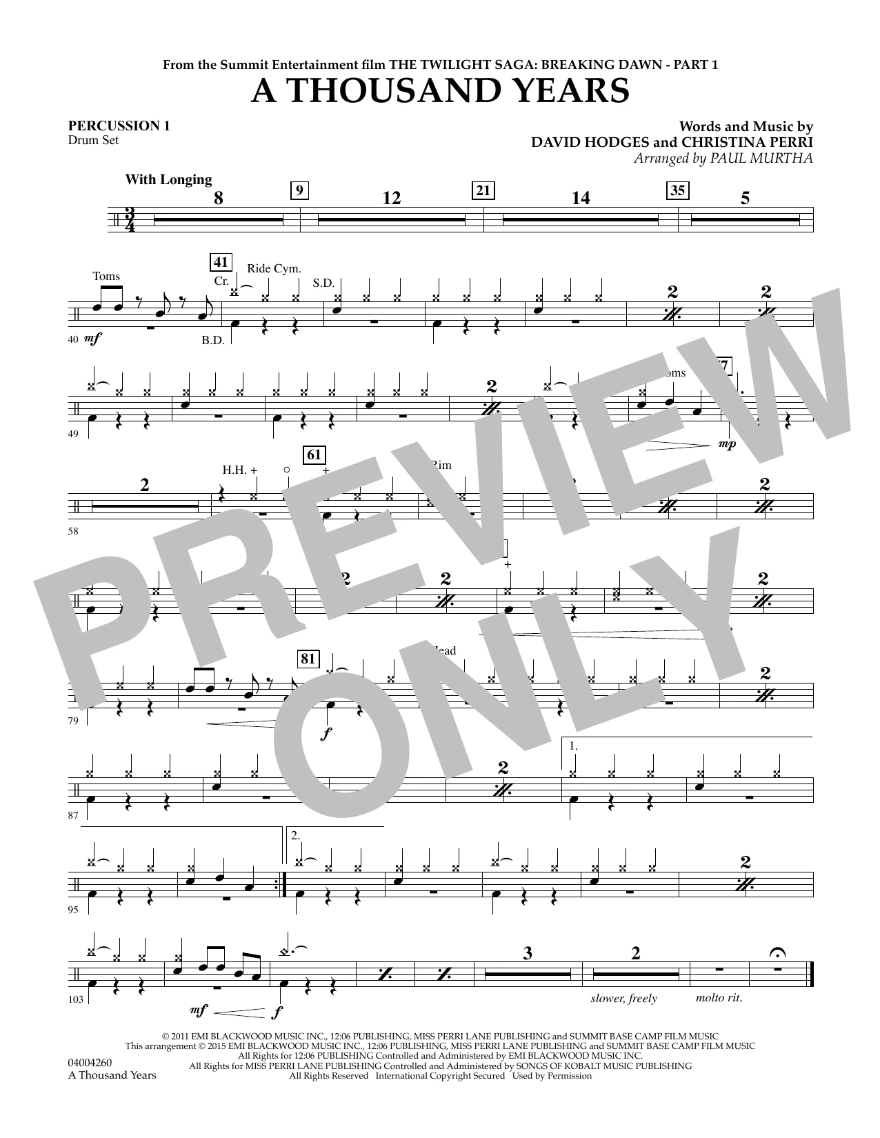 A Thousand Years (from The Twilight Saga: Breaking Dawn, Part 1) - Percussion 1