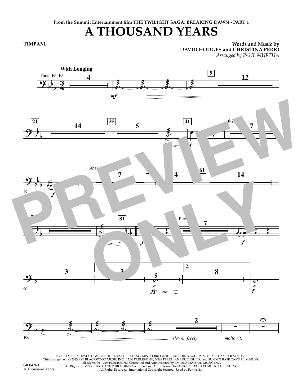 A Thousand Years (from The Twilight Saga: Breaking Dawn, Part 1) - Timpani