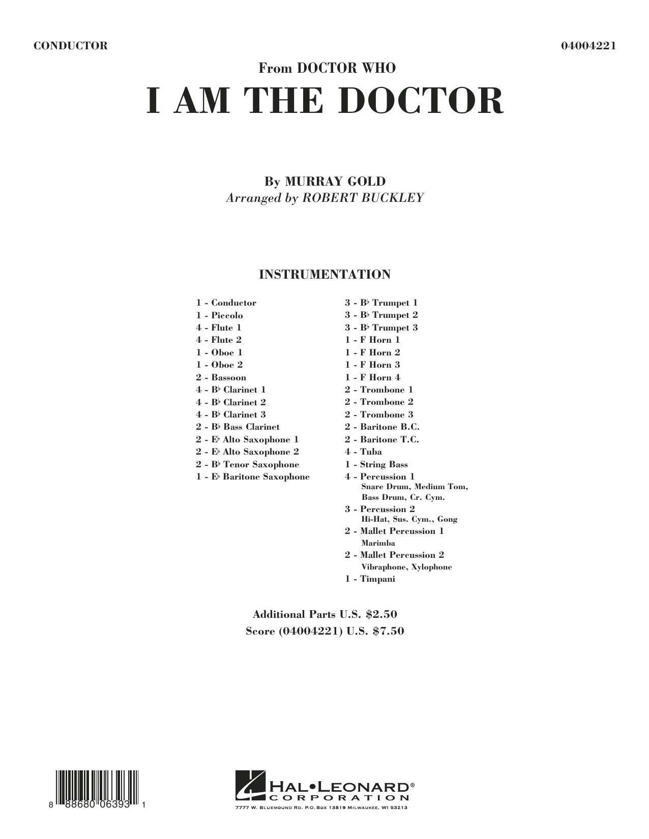 I Am the Doctor (from Doctor Who) - Conductor Score (Full Score)