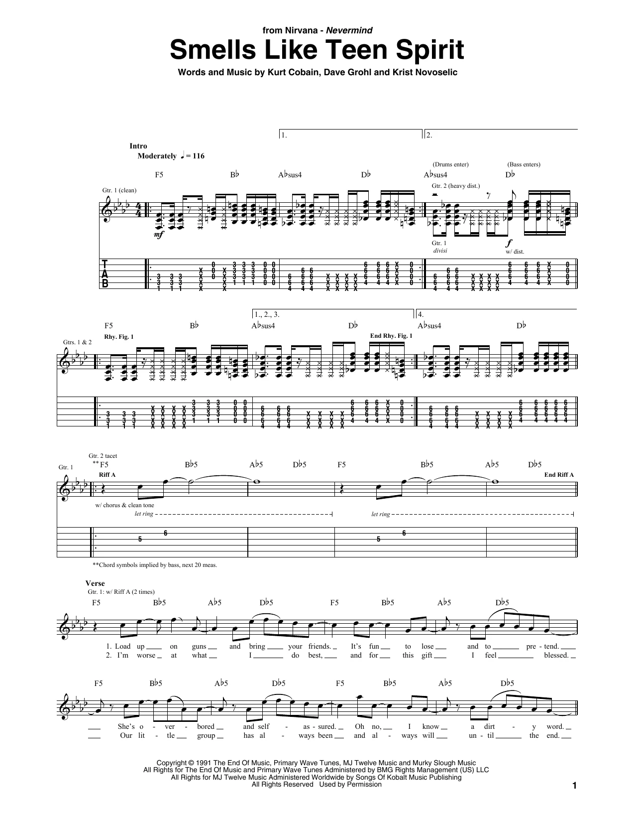 Auteurs : David Grohl, Kurt Cobain, Chris Novoselic