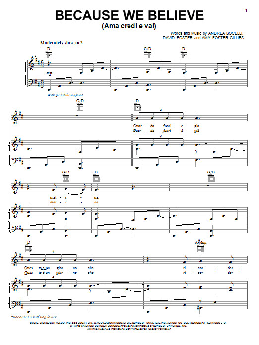 Auteurs : David Foster, Andrea Bocelli, Amy Foster-Gillies