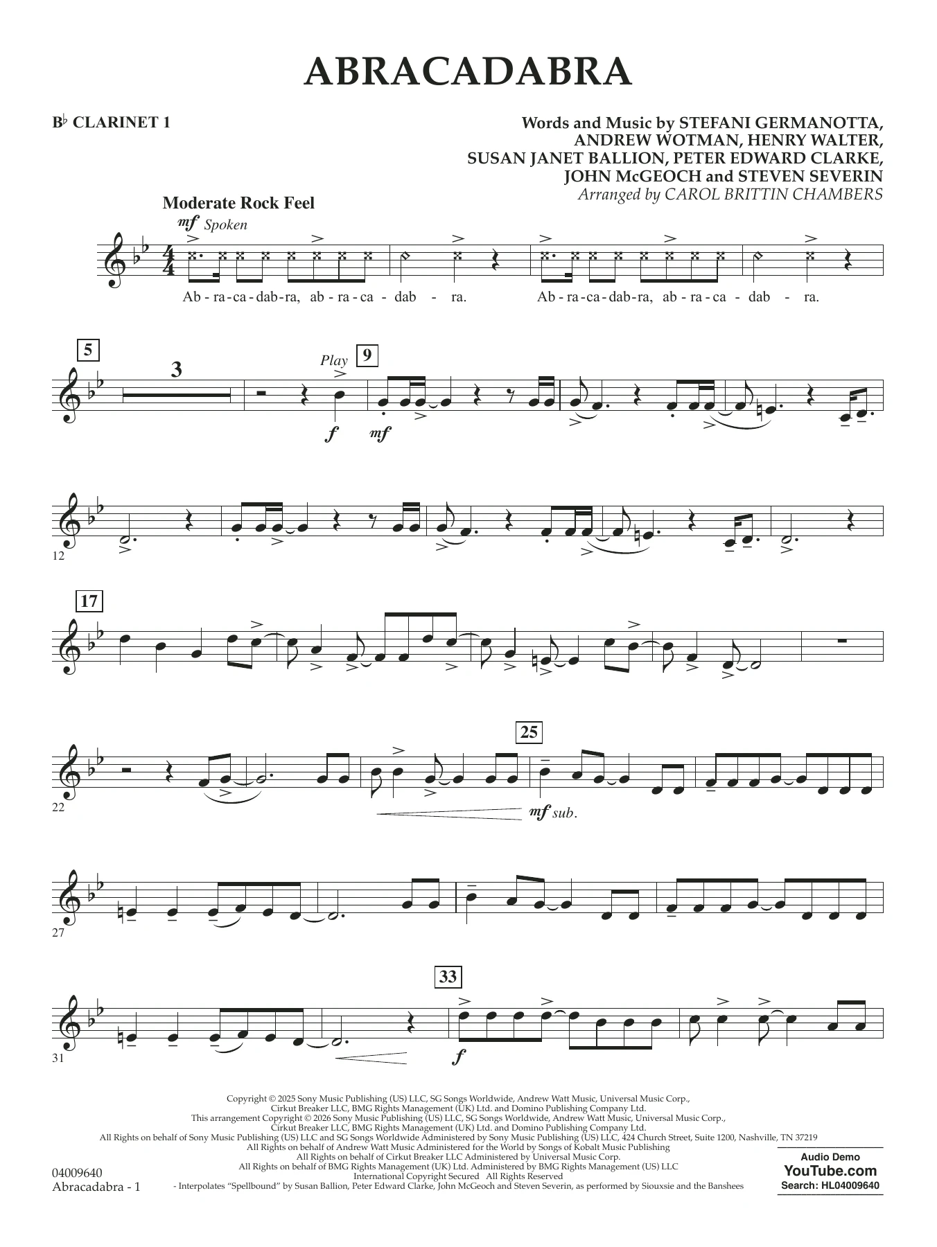 Abracadabra (arr. Chambers) - Bb Clarinet 1