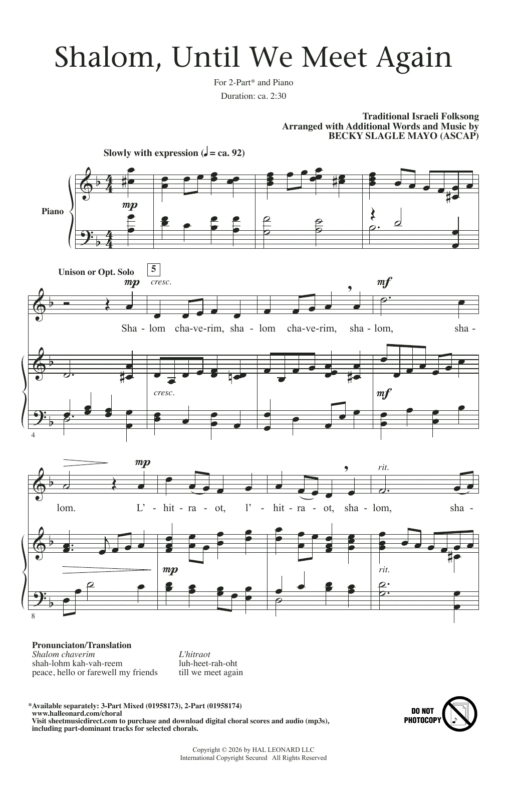 Shalom, Until We Meet Again (arr. Becki Slagle Mayo)