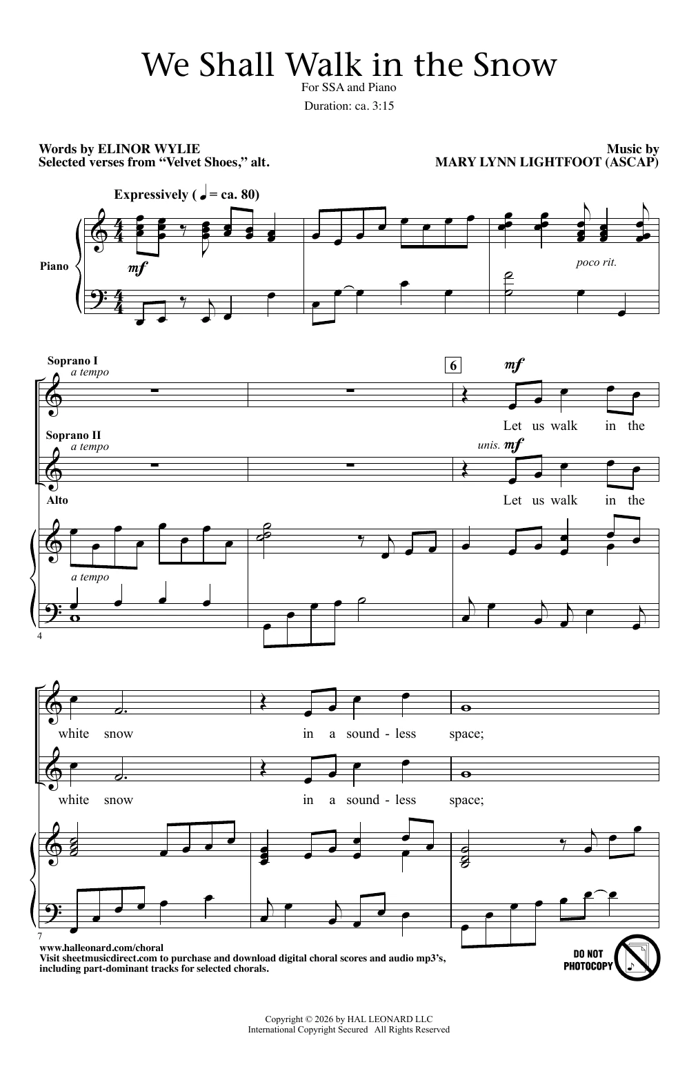 Compositeurs : Mary Lynn Lightfoot, Elinor Wylie