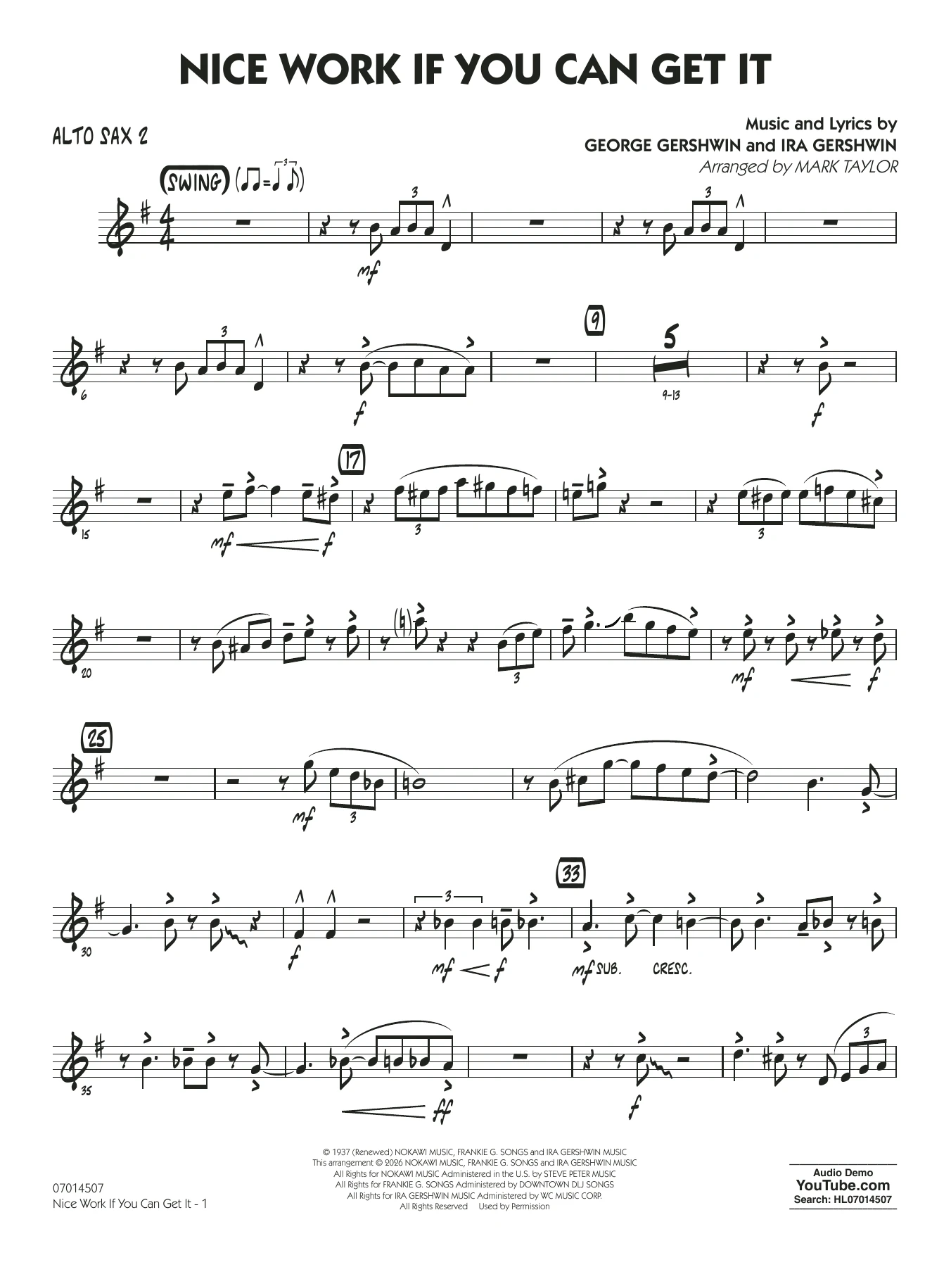 Nice Work If You Can Get It (arr. Mark Taylor) - Alto Sax 1