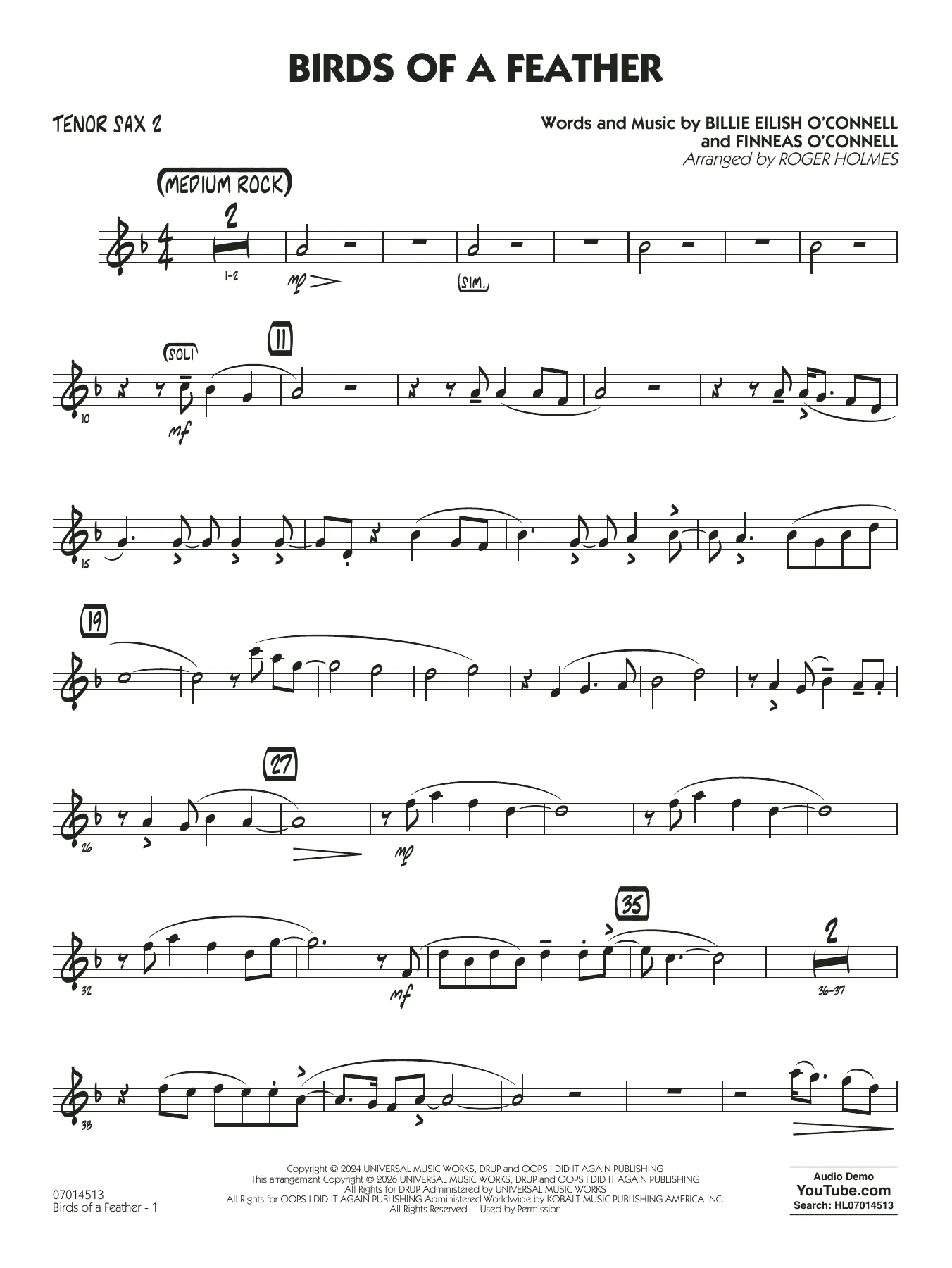 Birds of a Feather (arr. Roger Holmes) - Tenor Sax 1