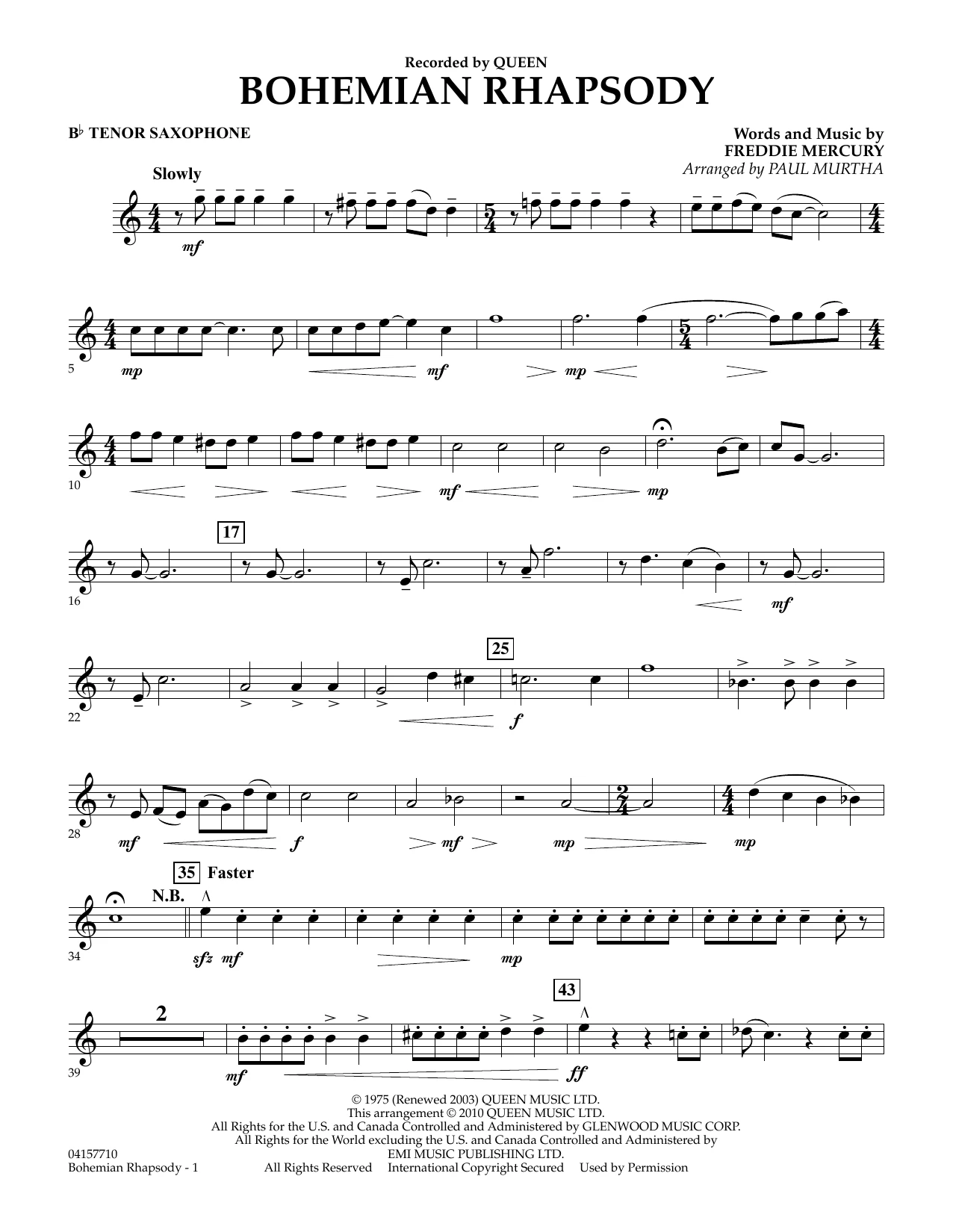 Bohemian Rhapsody (arr. Paul Murtha) - Tenor Saxophone