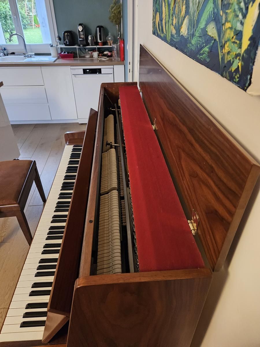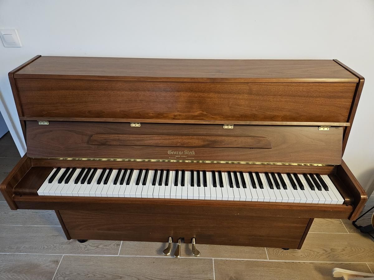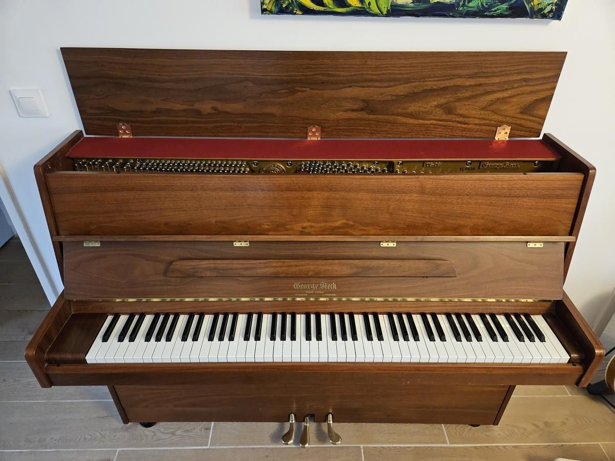 Ce piano droit cadre métallique 3 pédales d étude George Steck est en parfait état.