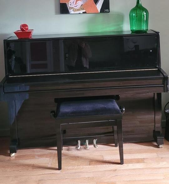 Piano droit laqué noir de marque Steiner, en très bon état, petite rayure sur le dessus . Acheté neuf il y a 10 ans.