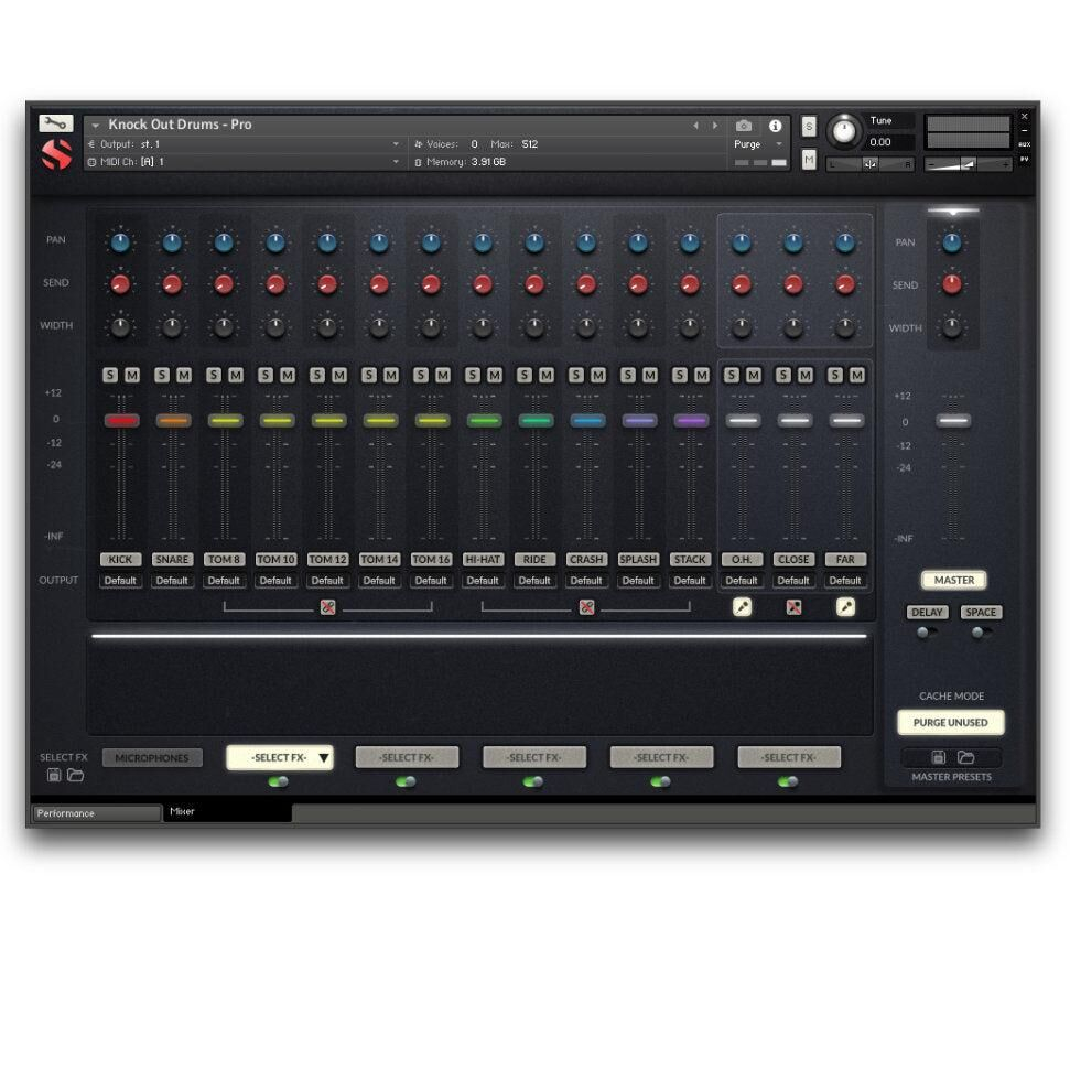 Nous avons doté l'interface utilisateur de puissants contrôles de façonnage sonore pour vous offrir une flexibilité totale. Les préréglages de la batterie principale contiennent chaque échantillon de la bibliothèque ainsi qu'un ensemble de puissantes fonctionnalités de performance. Utilisez le Remapper pour créer des mappings de batterie personnalisés ou chargez l'un de nos préréglages d'usine qui incluent plusieurs mappings de batterie courants pour une utilisation facile avec des boucles et des rythmes de batterie MIDI existants. Notre mixeur puissant vous permet de router chaque piste d'instrument vers n'importe quelle sortie disponible dans Kontakt et comprend un contrôle individuel du volume, de la panoramique, de l'envoi d'effets et de la largeur stéréo, du mono à la stéréo complète, ainsi qu'une chaîne d'effets avec compresseur, limiteur, égaliseur paramétrique 4 bandes, et bien plus encore ! La section Master propose des envois d'effets d'espace et de delay avec une grande variété d'options pour chacun.