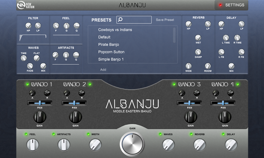 Avec l'interface légère et facile à utiliser d'Albanju, vous n'aurez aucun problème à trouver un préréglage ou à créer vos propres sons. En ayant en tête la simplification de vos productions, nous avons tout gardé, eh bien, simple ! Les effets minimaux vous permettent d'utiliser les effets avec lesquels vous êtes déjà familier (admettons-le, nous les utilisons tous de toute façon), d'avoir rapidement un contrôle total sur chaque banjo et de parcourir facilement les préréglages !