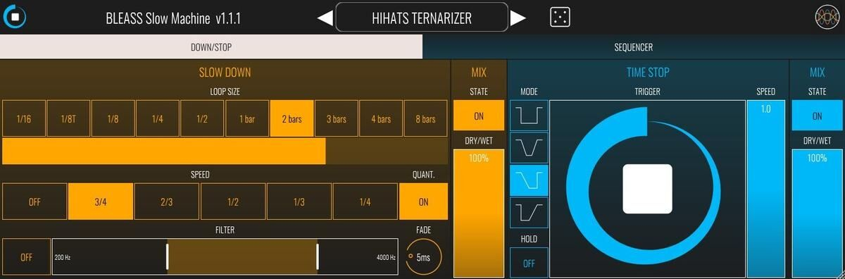 BLEASS Slow Machine est un plugin audio dynamique qui donne une nouvelle forme à vos pistes grâce à des ralentissements créatifs, des arrêts de bande et des séquences de vitesse. Ses trois étapes - Ralentir, Arrêt temporel et Séquence de vitesse - vous offrent un contrôle précis sur le rythme et la hauteur. Ralentir ajuste la vitesse de lecture, la taille de la boucle et le filtrage pour des variations audacieuses ou subtiles. L'Arrêt temporel propose des effets de bande intuitifs avec des modes polyvalents et une fonction de maintien, idéale pour une utilisation en direct. La Séquence de vitesse permet de programmer des changements de vitesse rythmiques avec des étapes et des courbes ajustables. Avec une interface intuitive et une faible utilisation du processeur, il est indispensable pour les producteurs et les sound designers à la recherche d'effets frais, nostalgiques ou modernes.