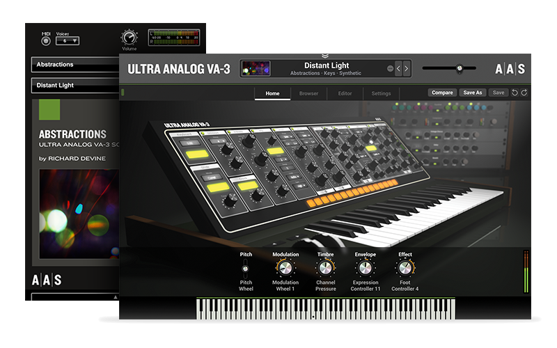 Abstractions est une collection de 127 sons exclusifs qui couvrent les catégories analogiques classiques, mais qui ont été revisités avec le style unique et l'esthétique de Richard Devine.